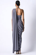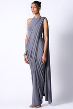 The Star Jersey Sari made in slinky jersey drapes the best as a sari and frames the body in the right way. Pair it up with our halter top made in a slinky jersey and you have an easy but sexy outfit ready for you next festivities.