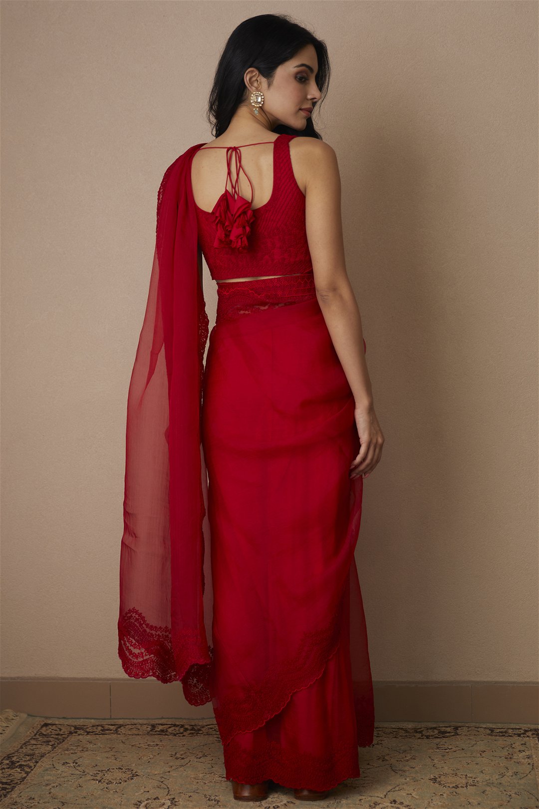 Red Organza Saree Set