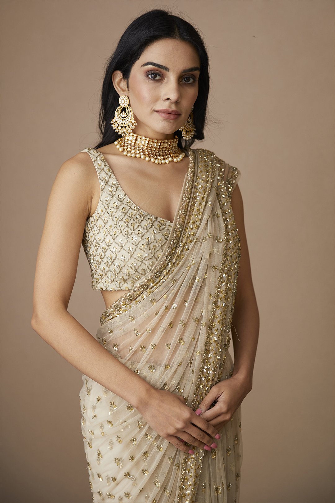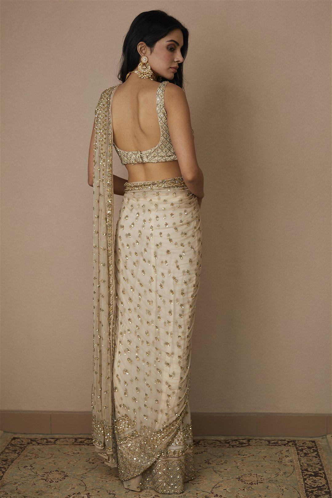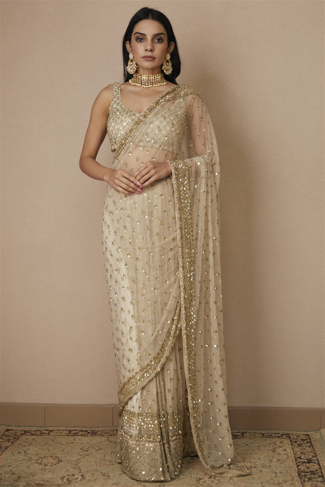 Off White Sequin and Beads Saree