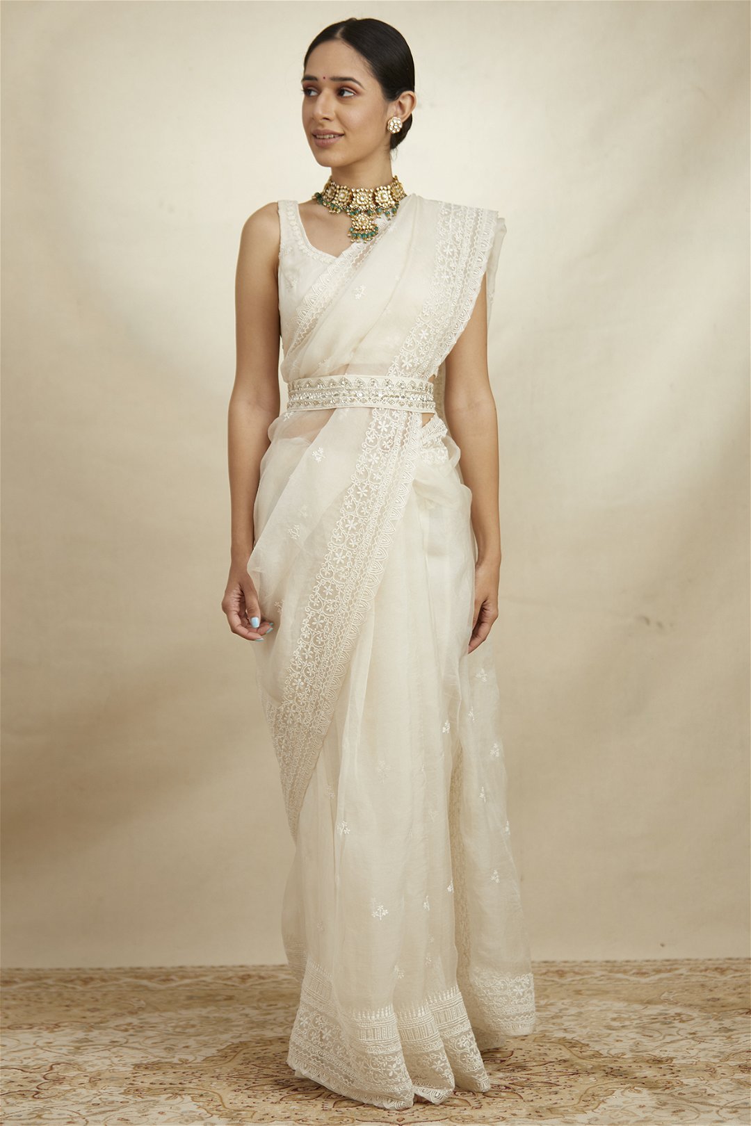 Best known for her evergreen silhouettes, delicate zari embroidery, blooming florals, intricate pleats, and drapes with a modern sensibility
