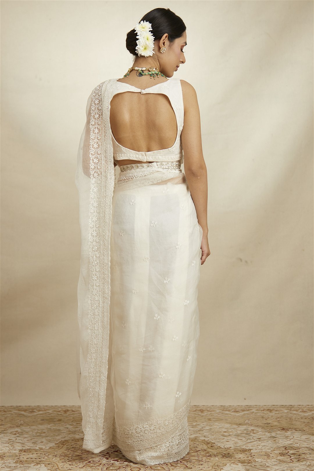 White Organza Sequin Work Saree Set