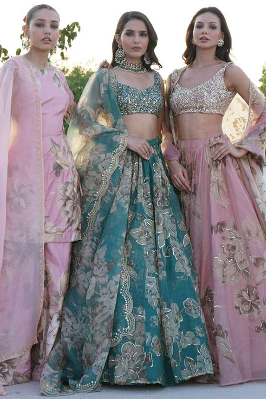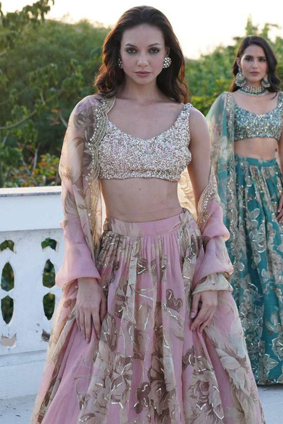 Pink Organza Lehenga Set