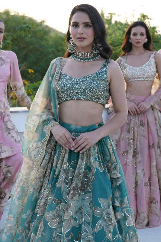 Grey Organza Lehenga Set