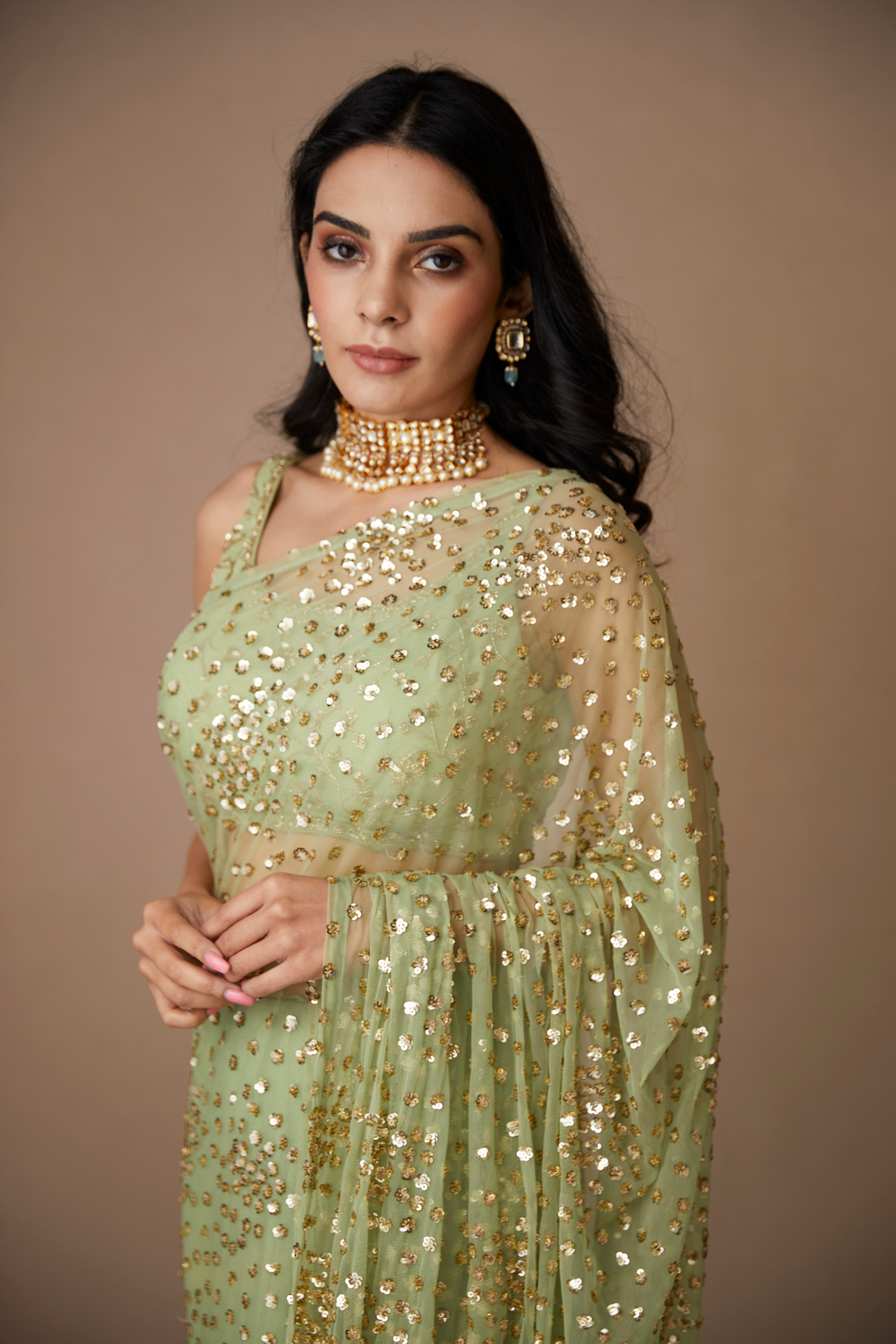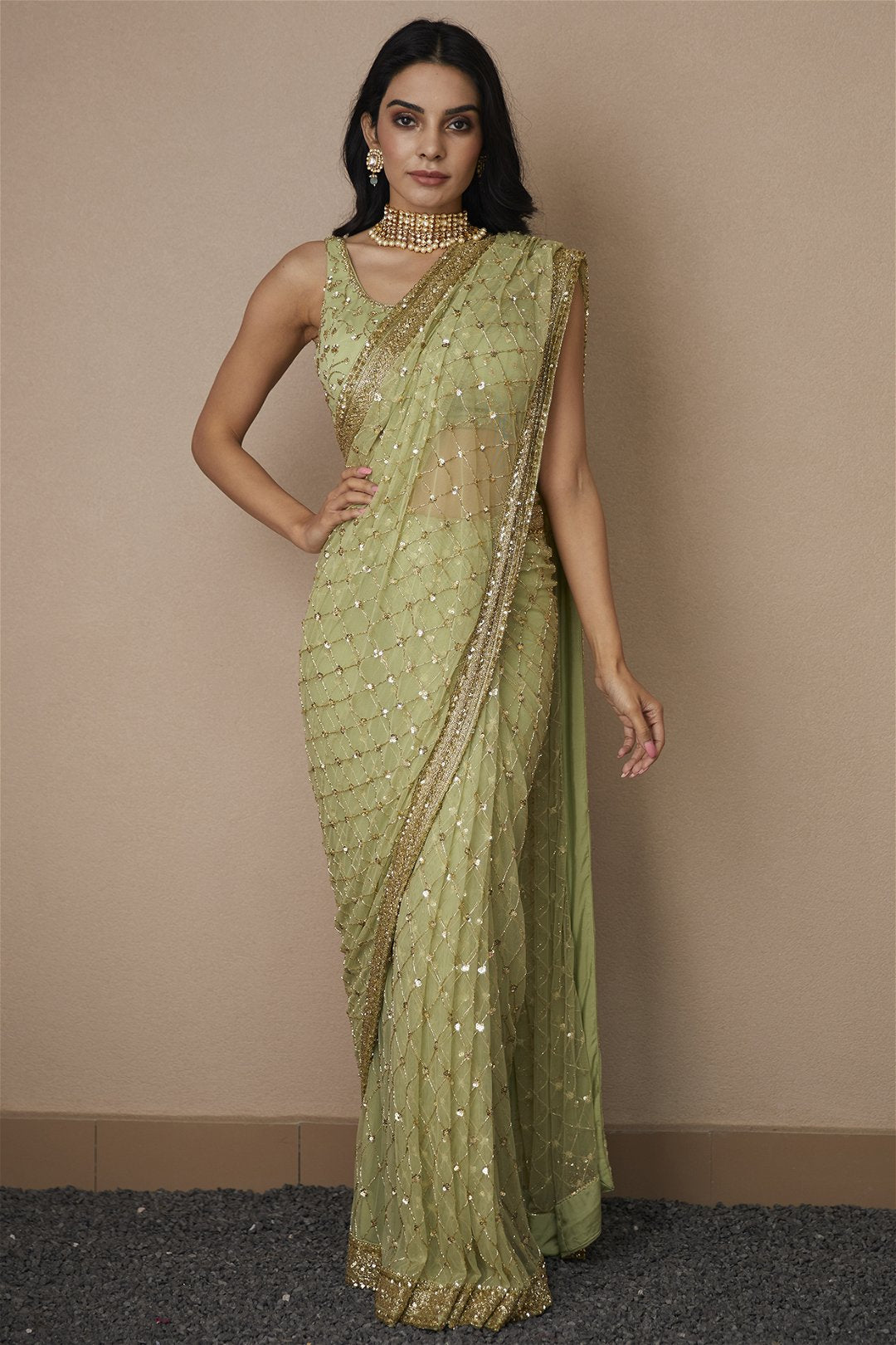 Mint Green Shimmer Saree Set
