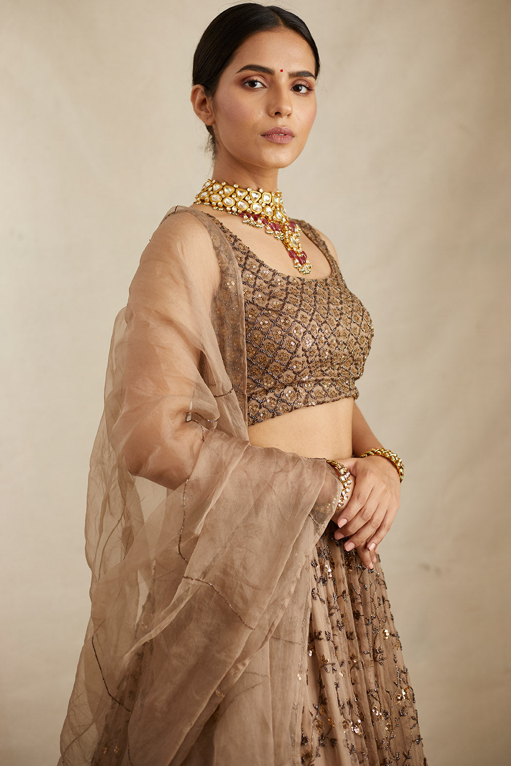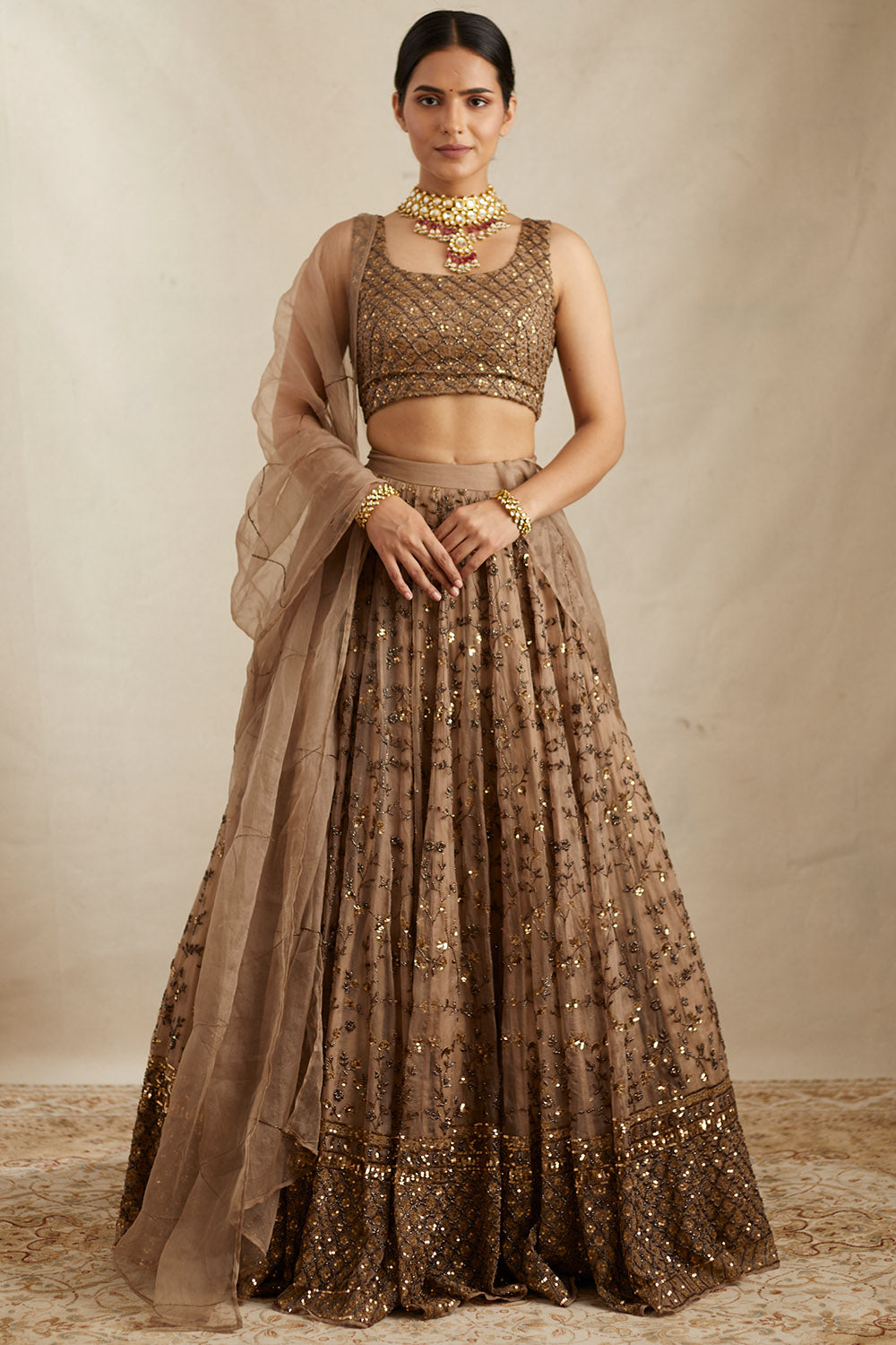 Brown Organza Lehenga Set