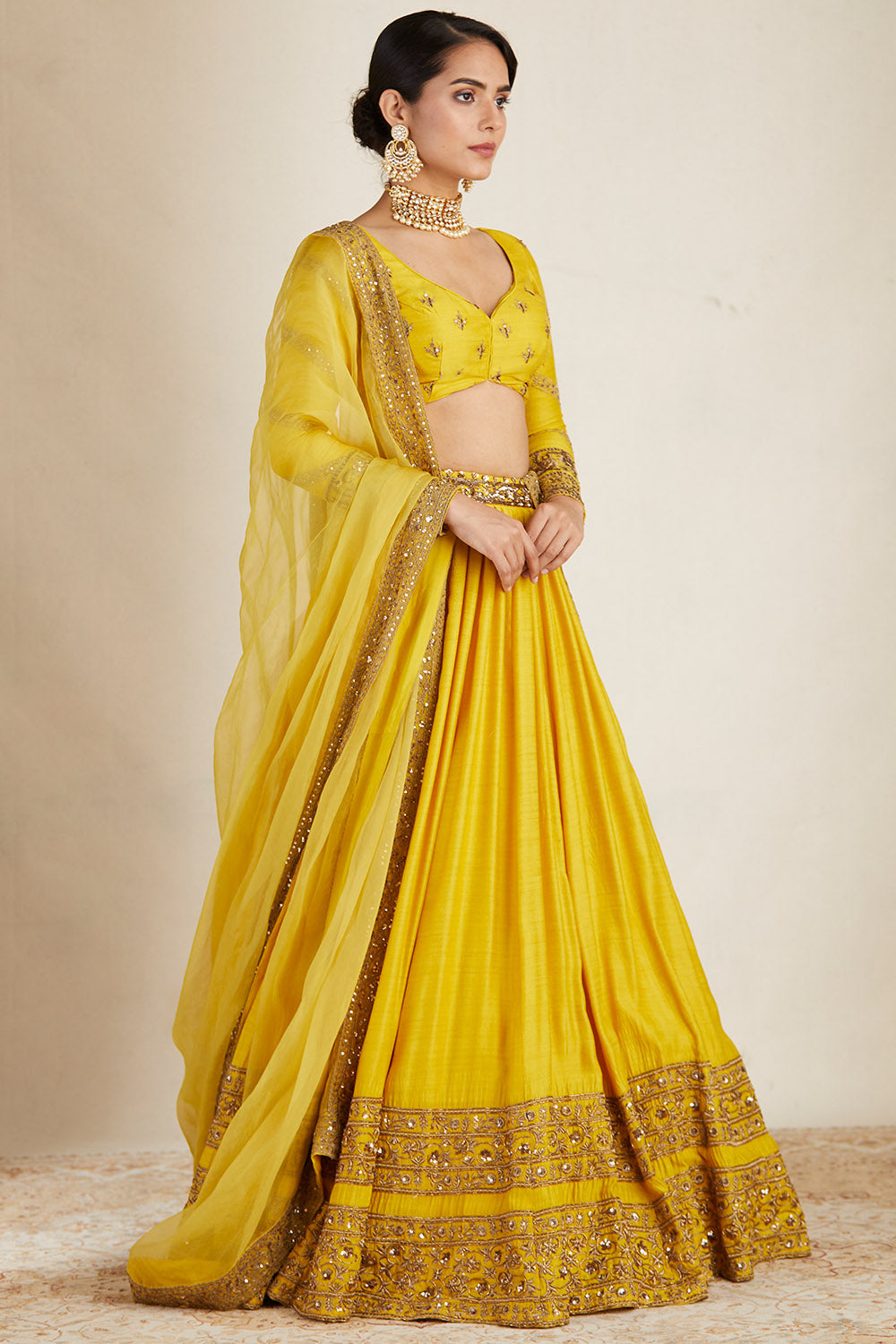 Mustard Chanderi Lehenga Set