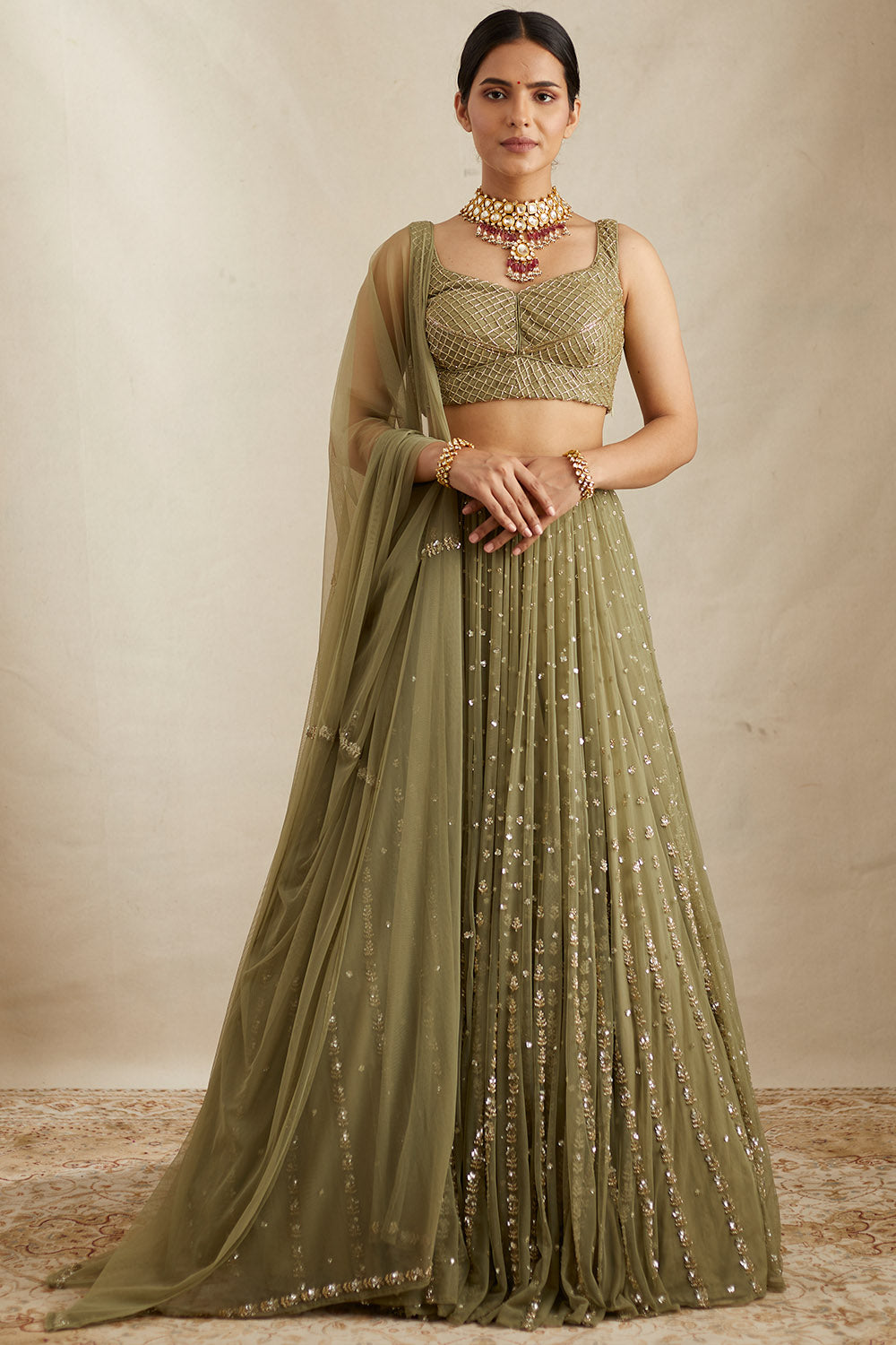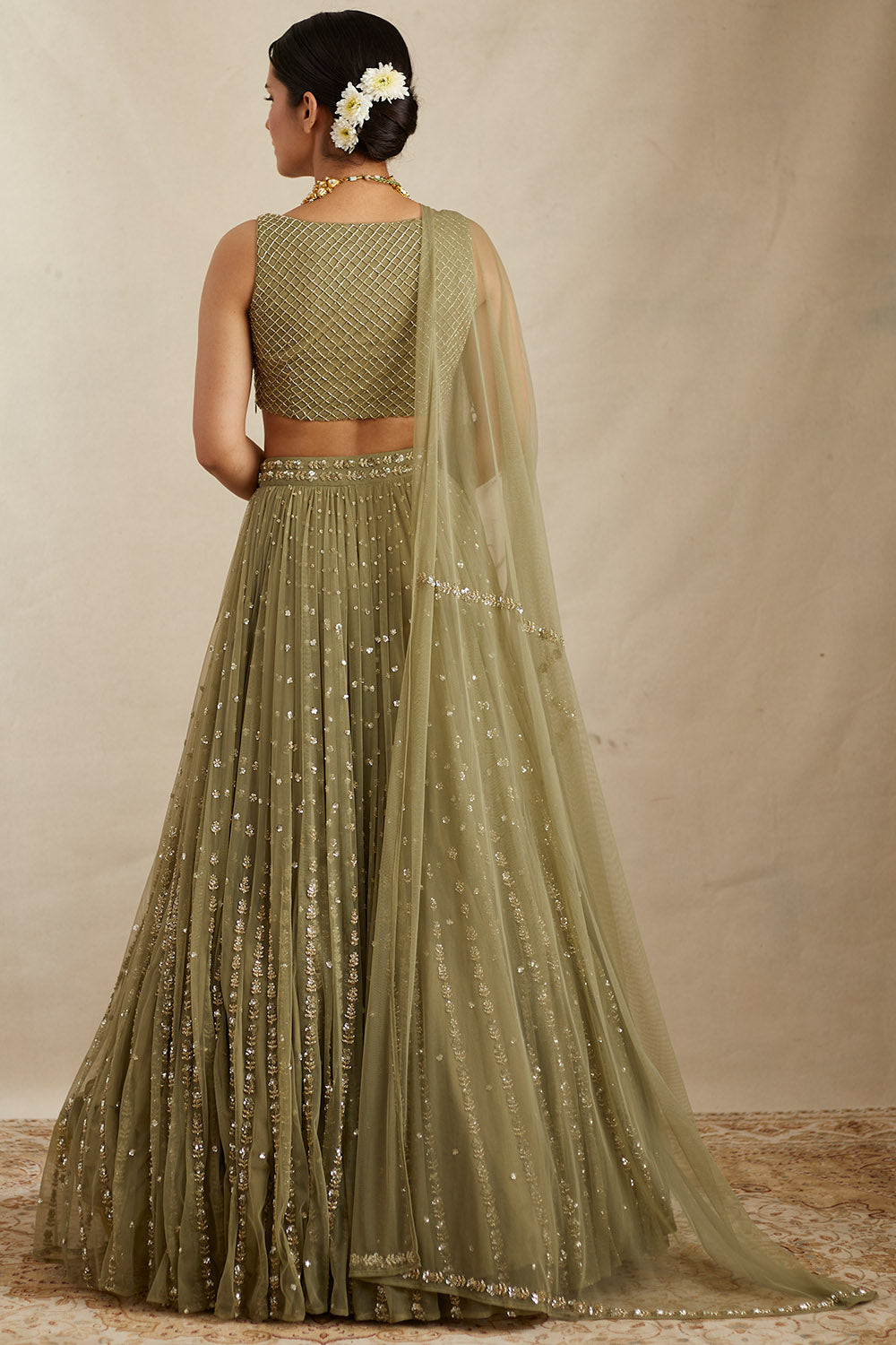 Olive Green Flare Lehenga Set