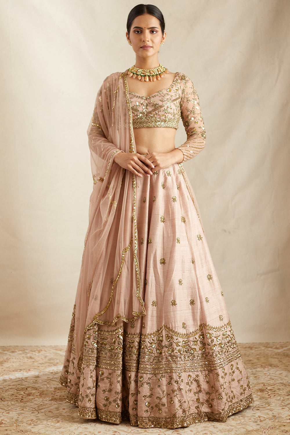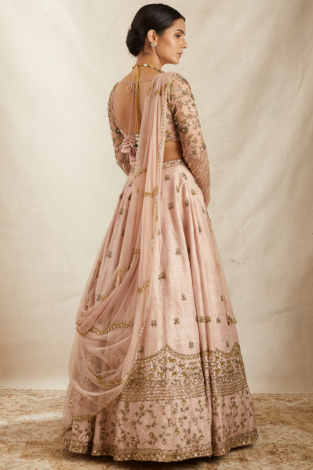 Peach Pink Raw Silk Lehenga Set