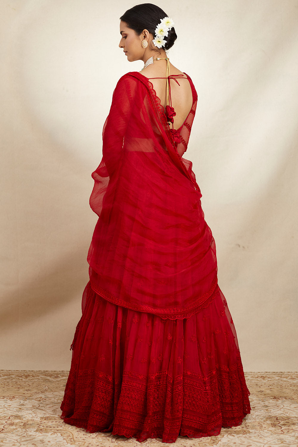 Red Organza Lehenga Set