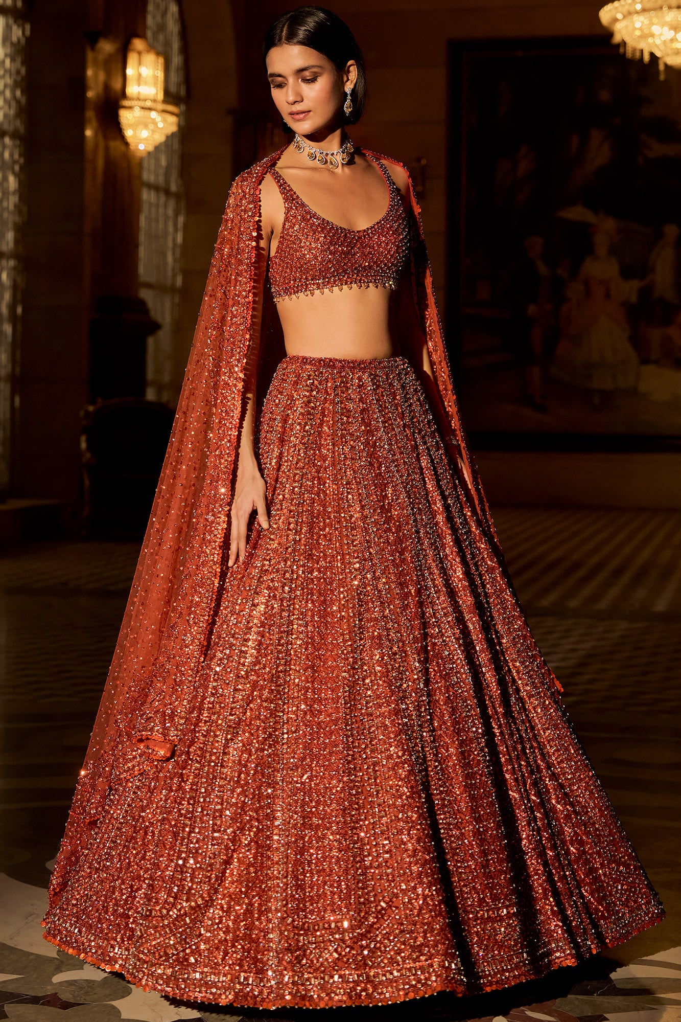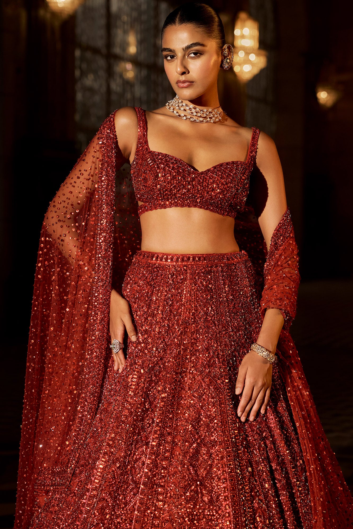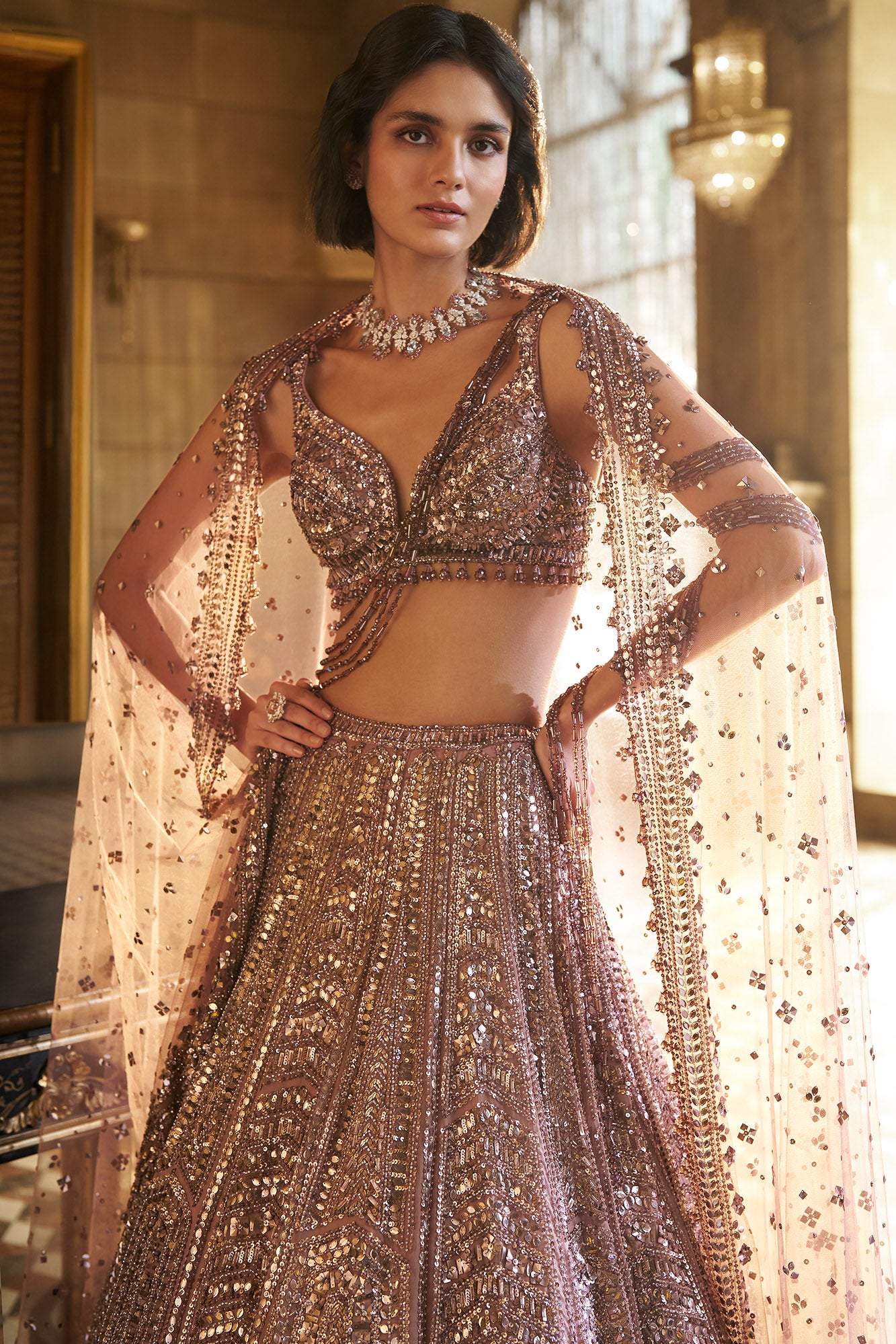 Seema Gujral Dusty Mauve Sequin Lehenga Set