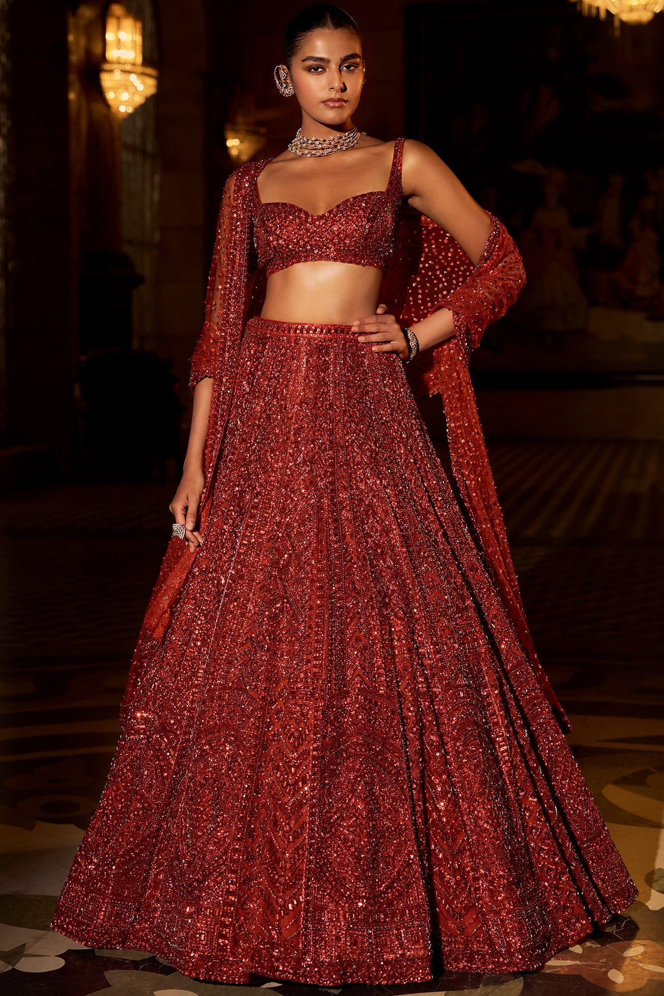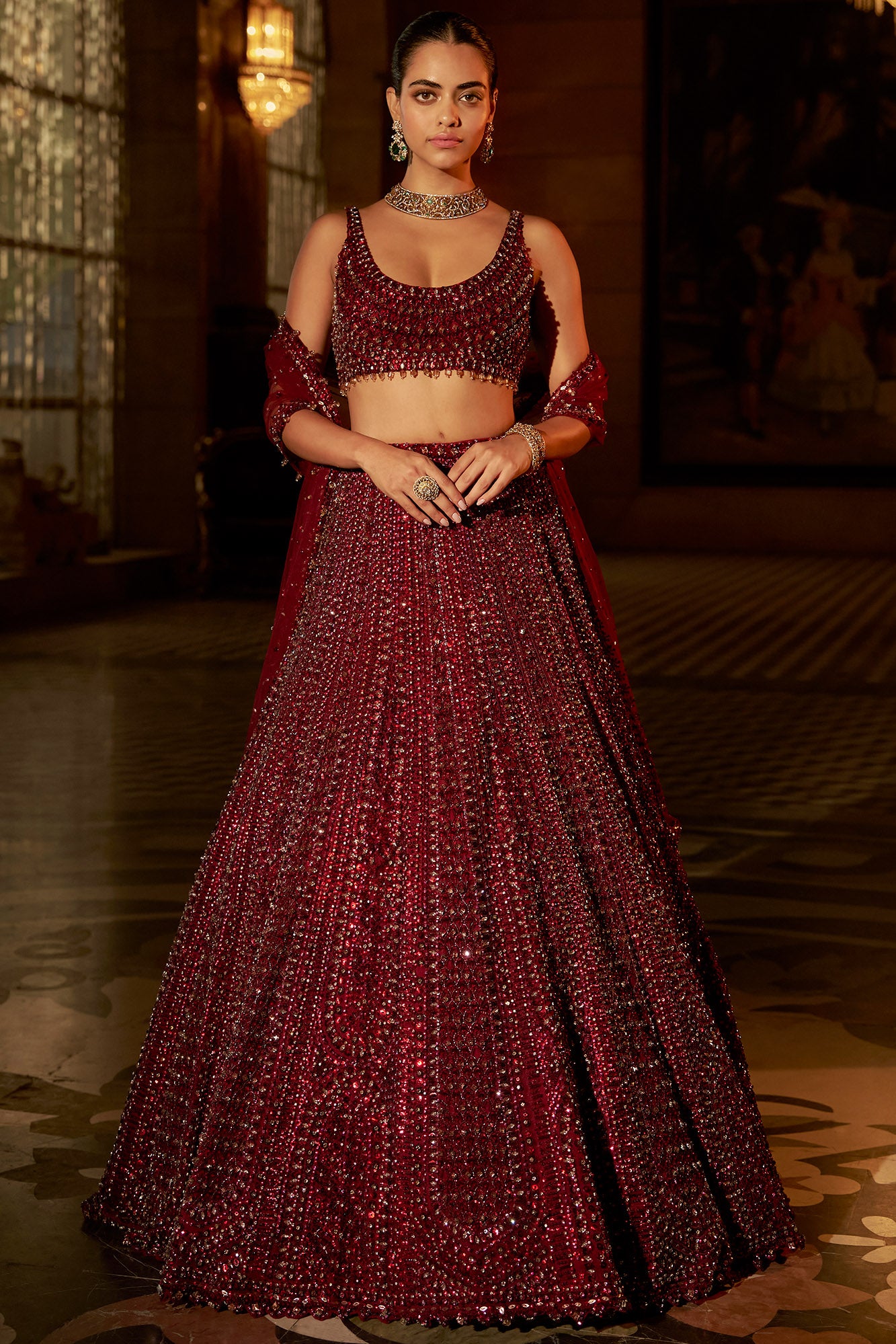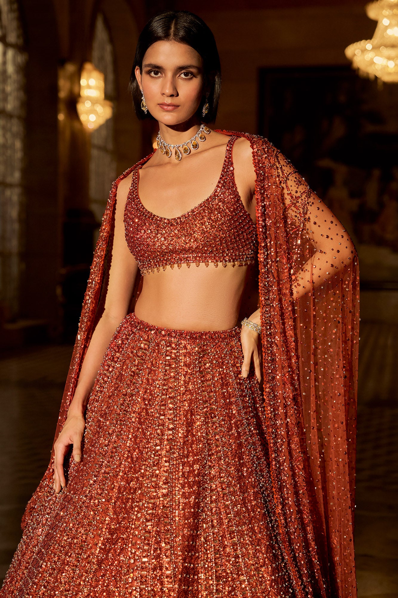 Seema Gujral Dusty Mauve Sequin Lehenga Set