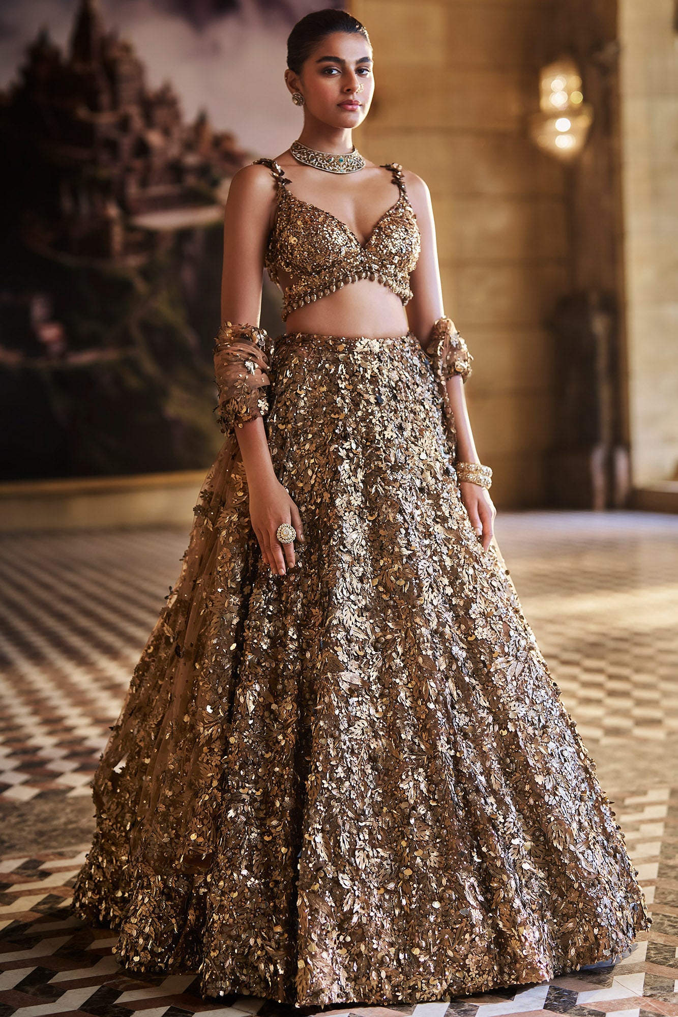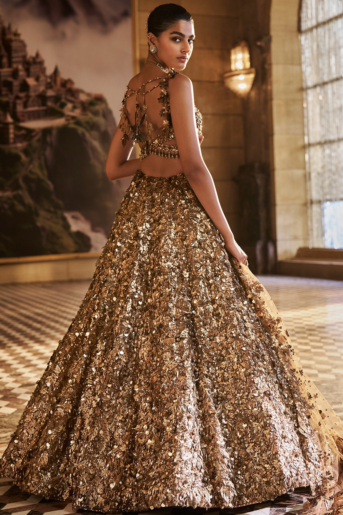 Seema Gujral Metallic Gold 3D Lehenga Set