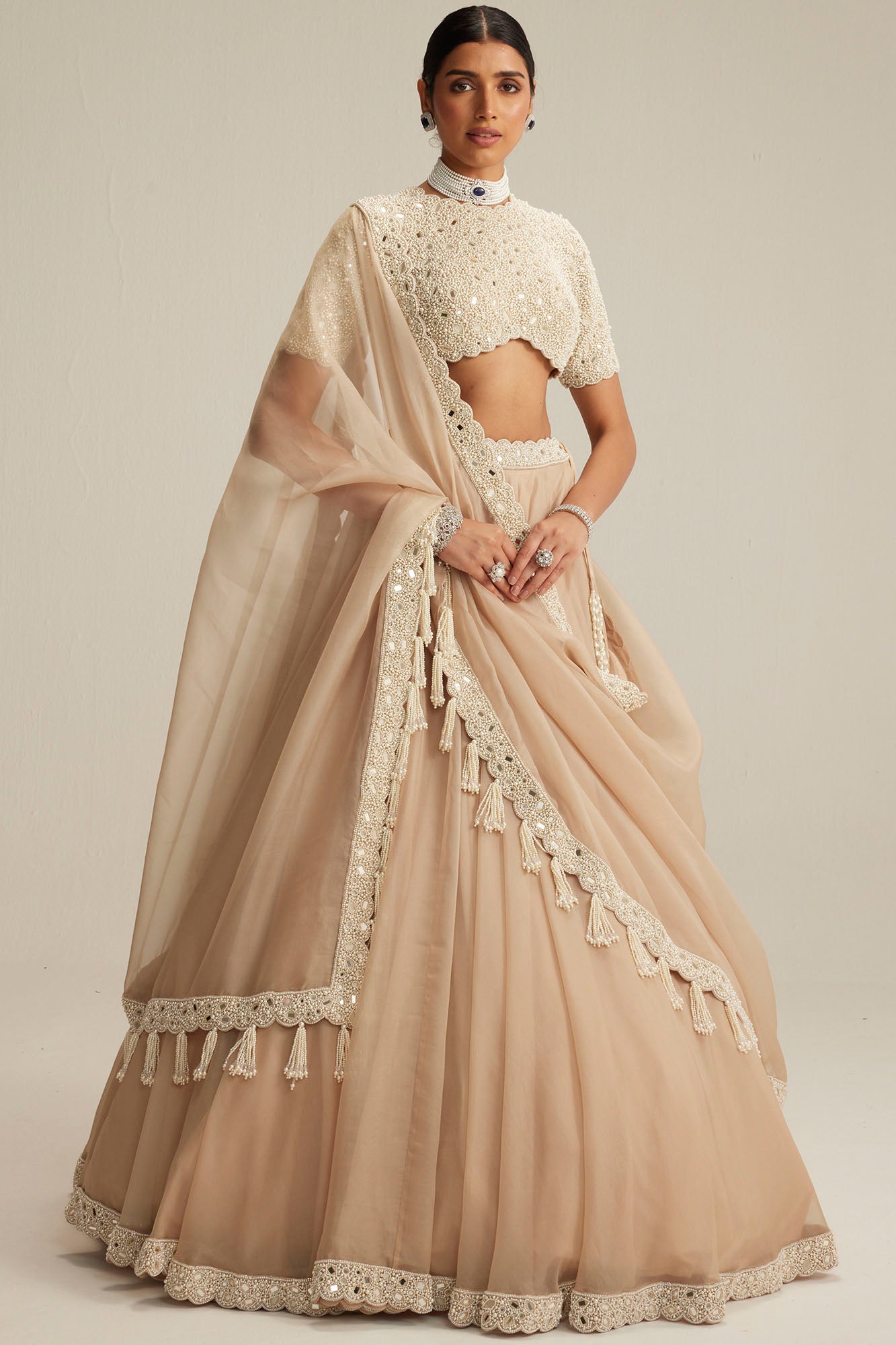 Seema Gujral Antique Gold Mirror Work Lehenga Set