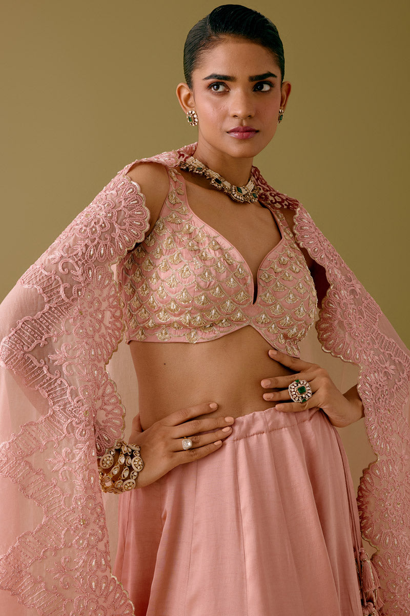 Pink Embroidered Silk Satin Lehenga