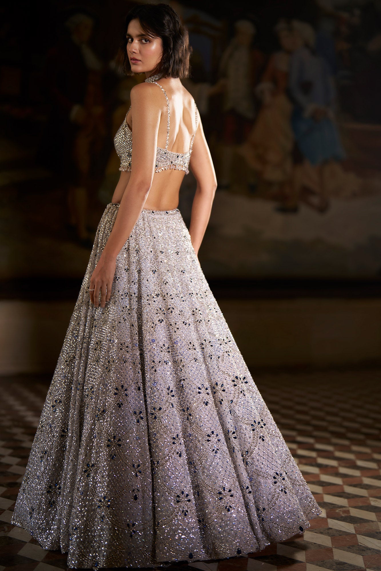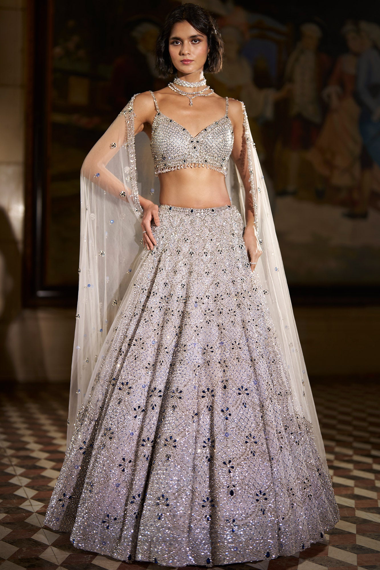 Seema Gujral Blue Crystal Lehenga Set