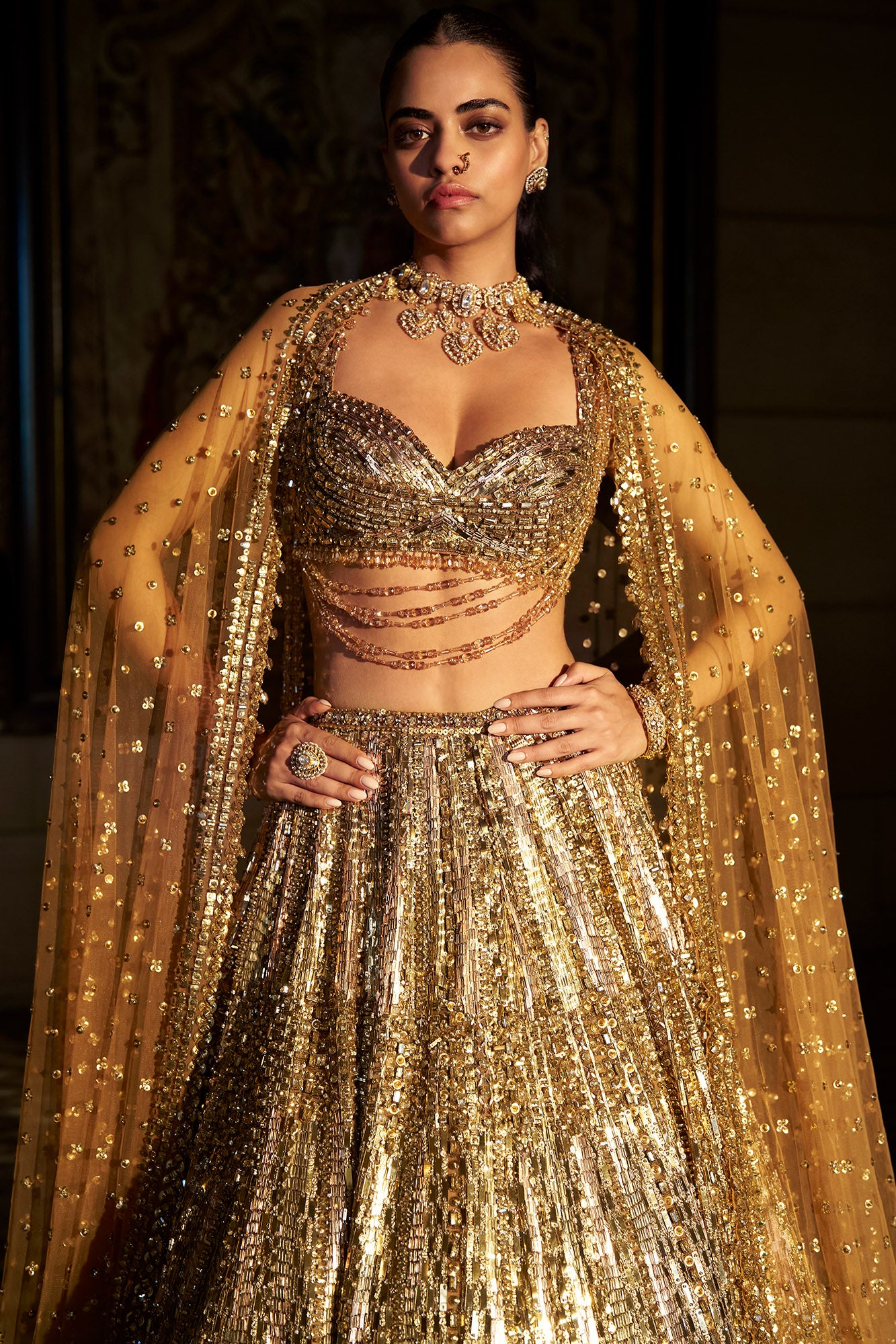 Seema Gujral Gold Crystal Lehenga Set
