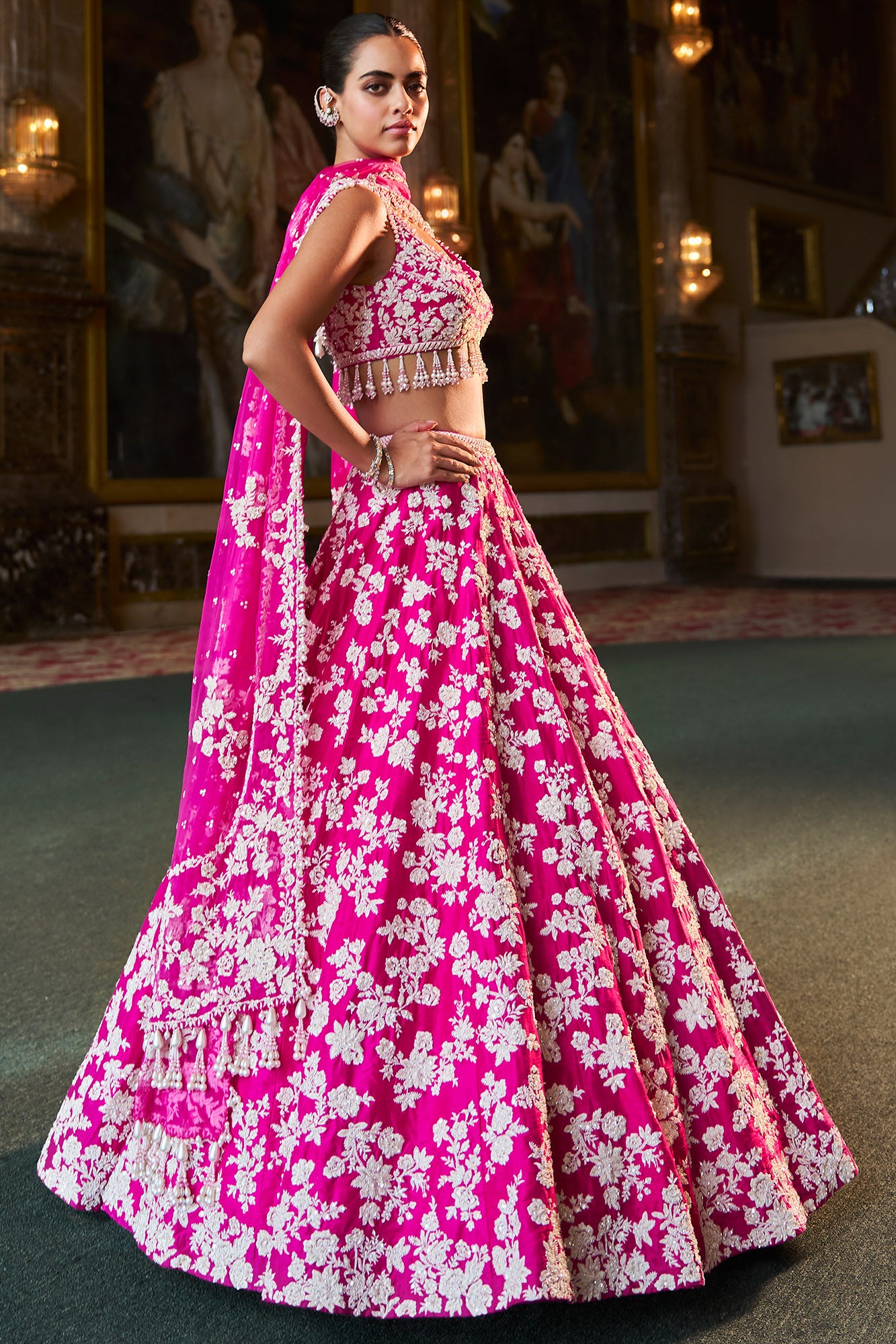 Seema Gujral Fuchsia Pink Thread Work Lehenga Set