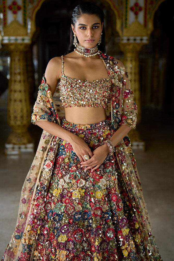Multi-Coloured 3D Floral Lehenga Set