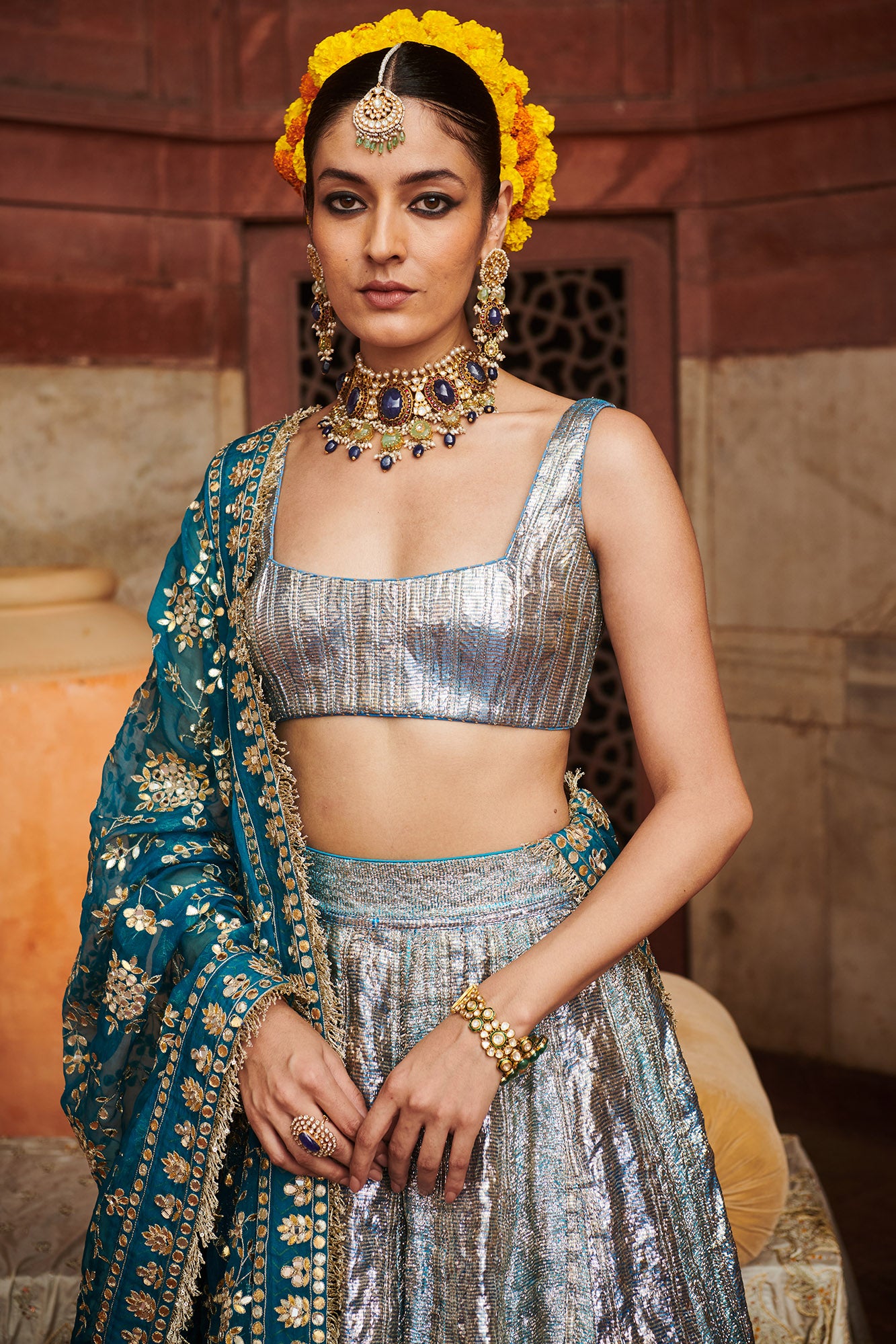 Chandi Sona Sheesh Lampi Lehenga and Cape Set