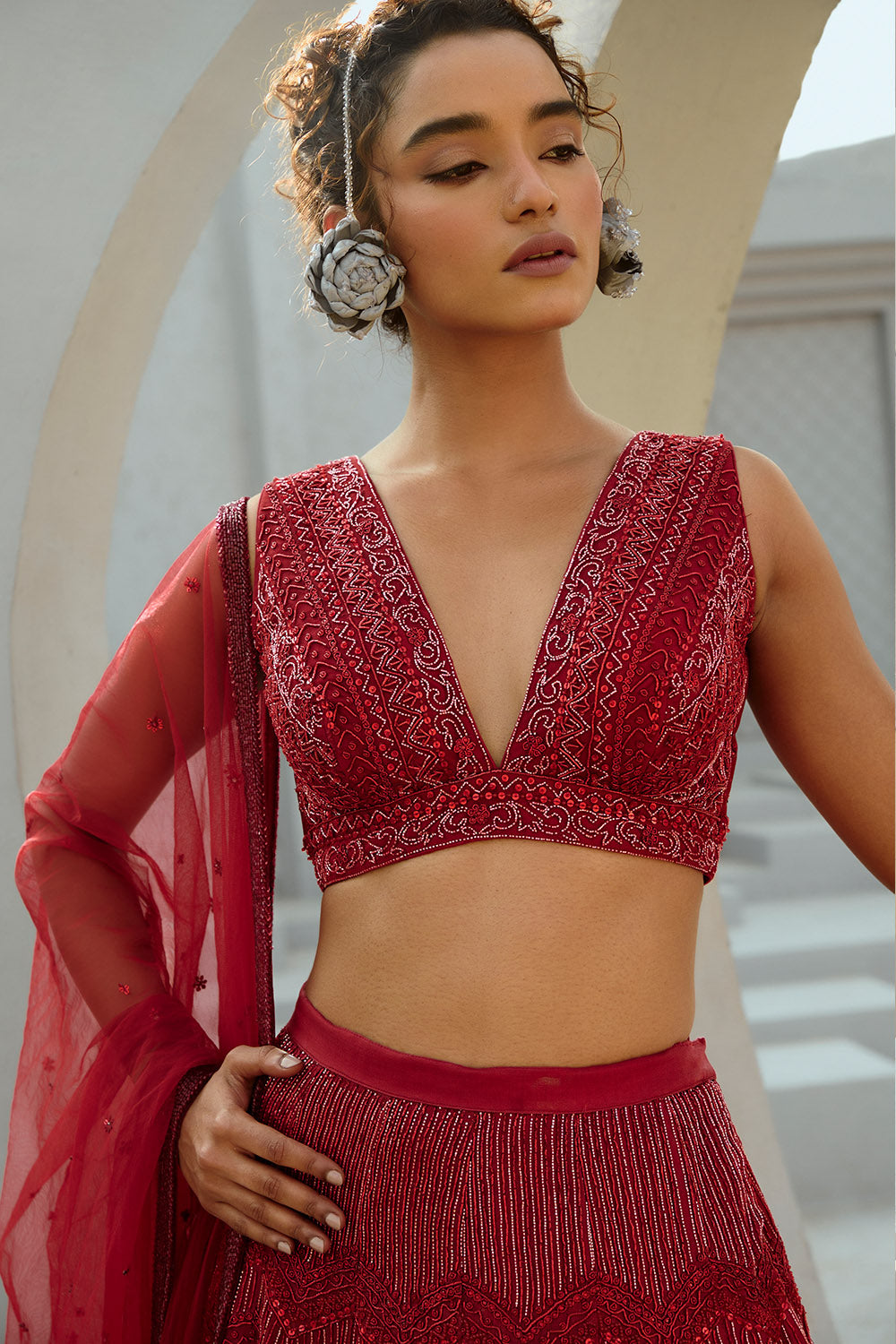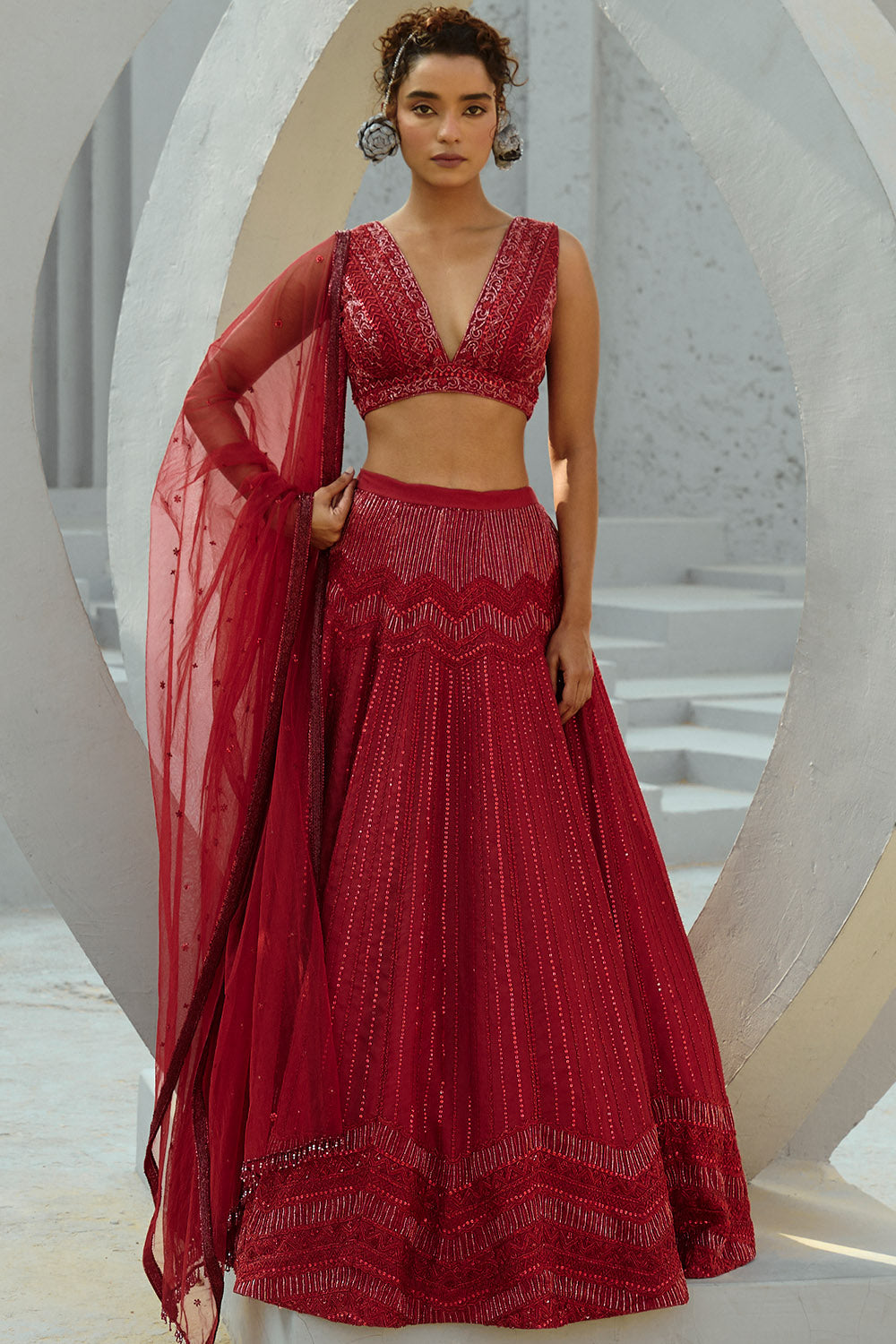 Aura Red Lehenga Set