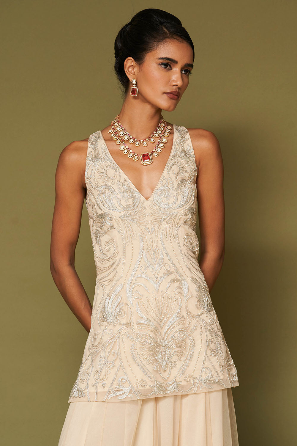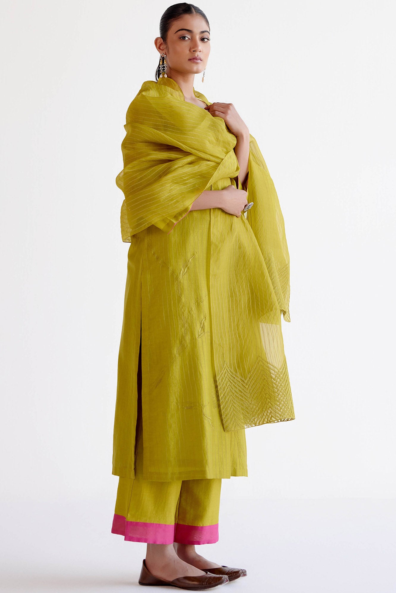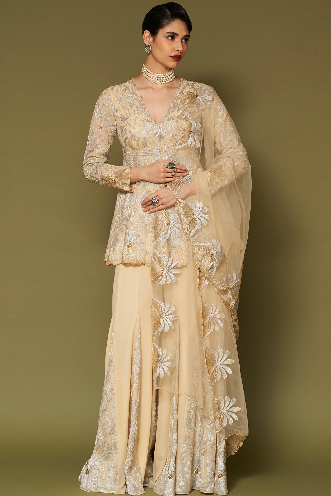 Best known for lightweight classic suits, lehengas, and kurtas with focus on hand work and painted techniques