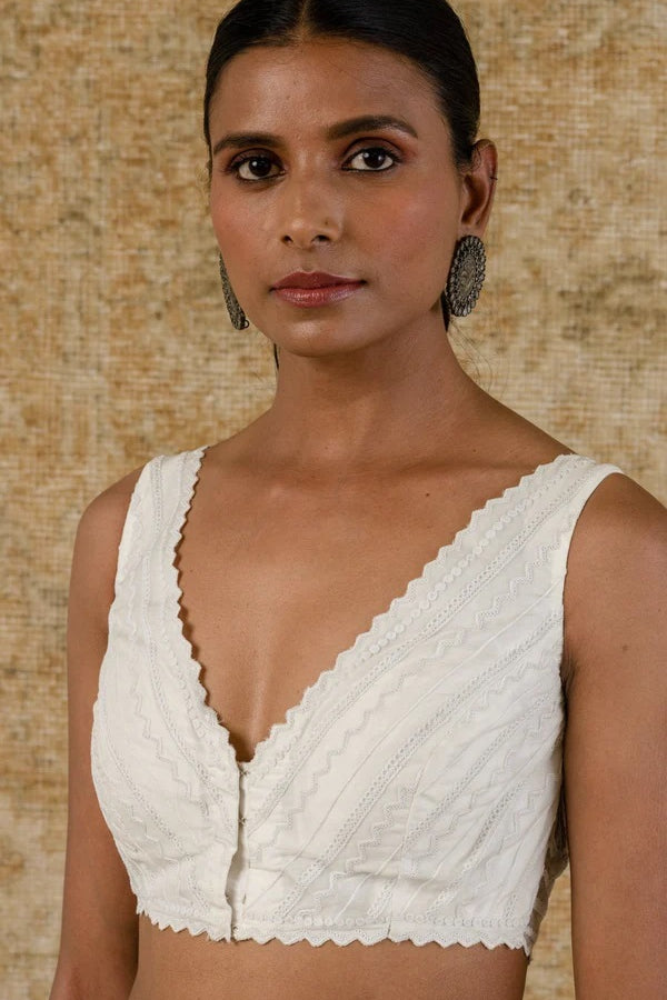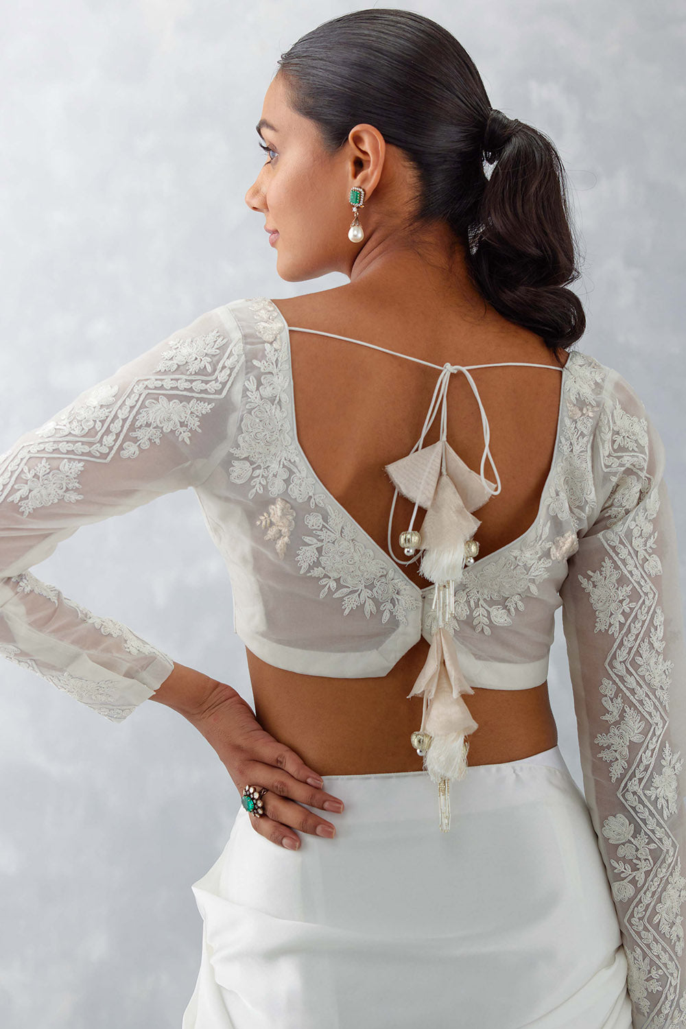Ivory Satin Pre Draped Saree
