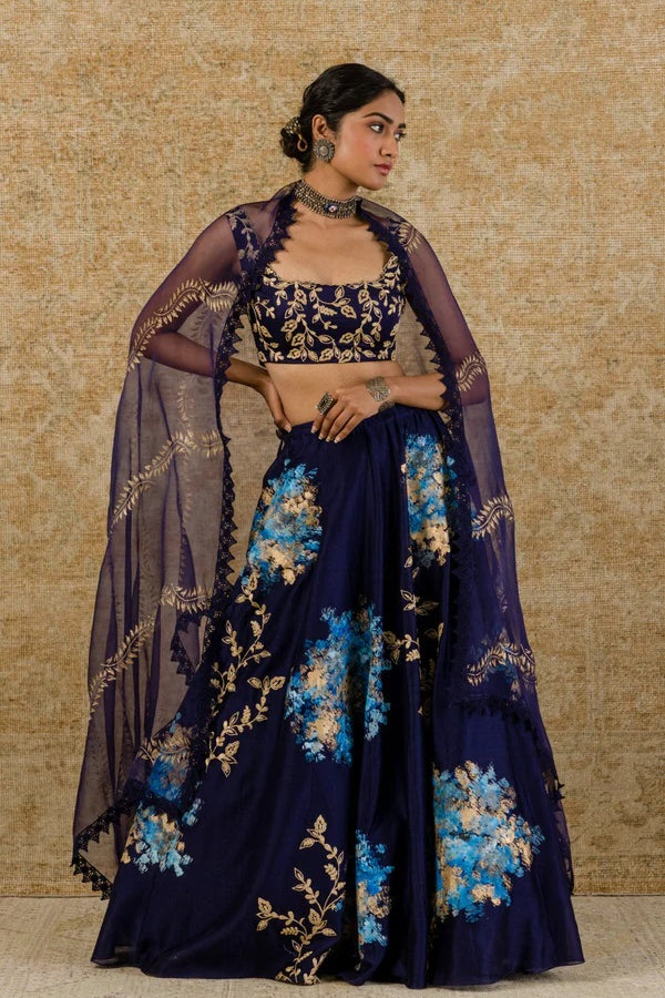 NAVY CHANDERI SILK LEHENGA SET