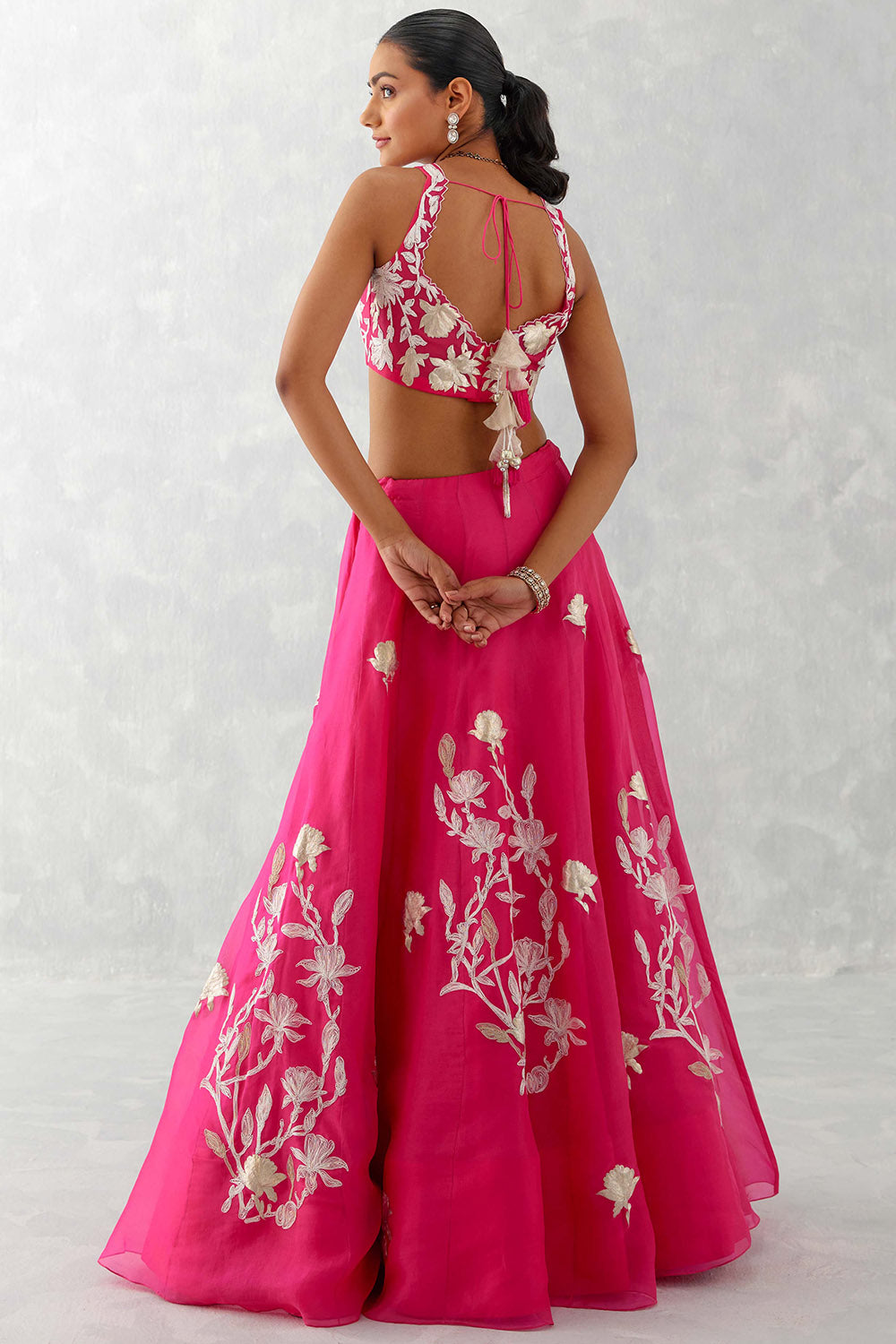 Fuchsia Pink Embroidered Silk Organza Lehenga