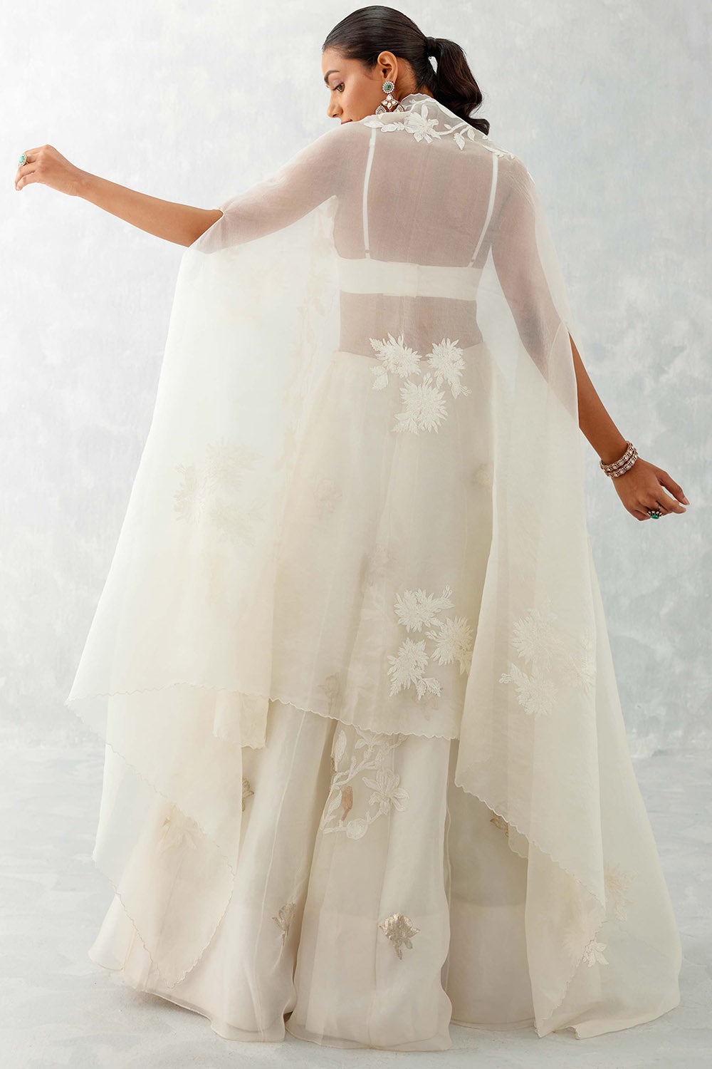 Ivory Silk Organza Cape Lehenga Set