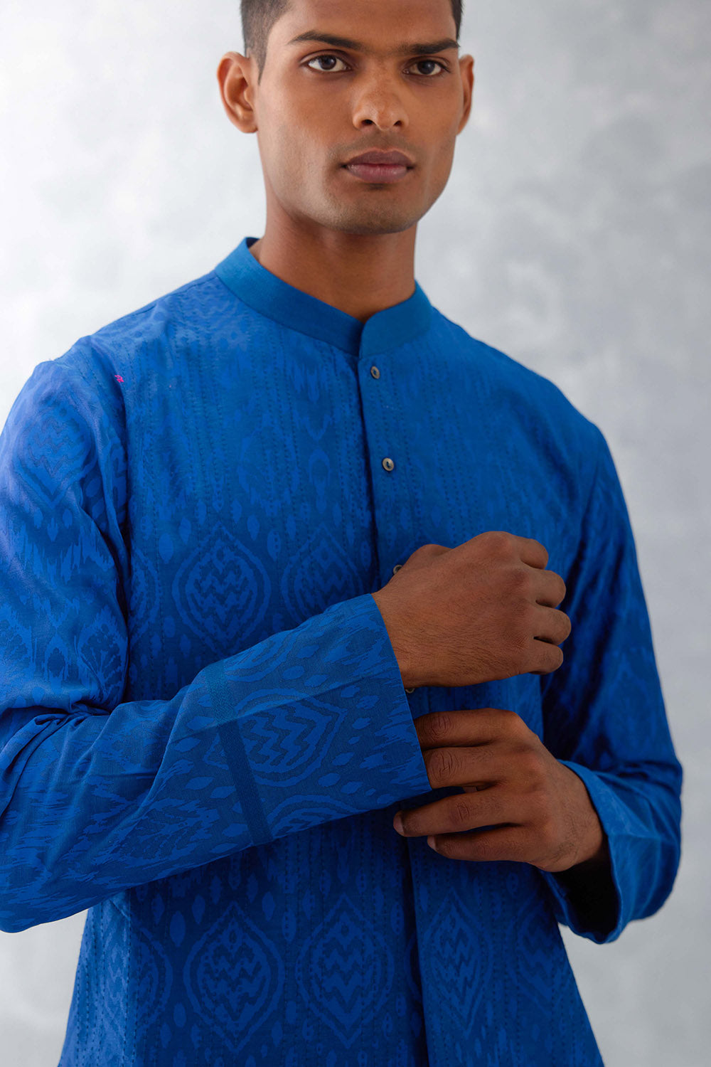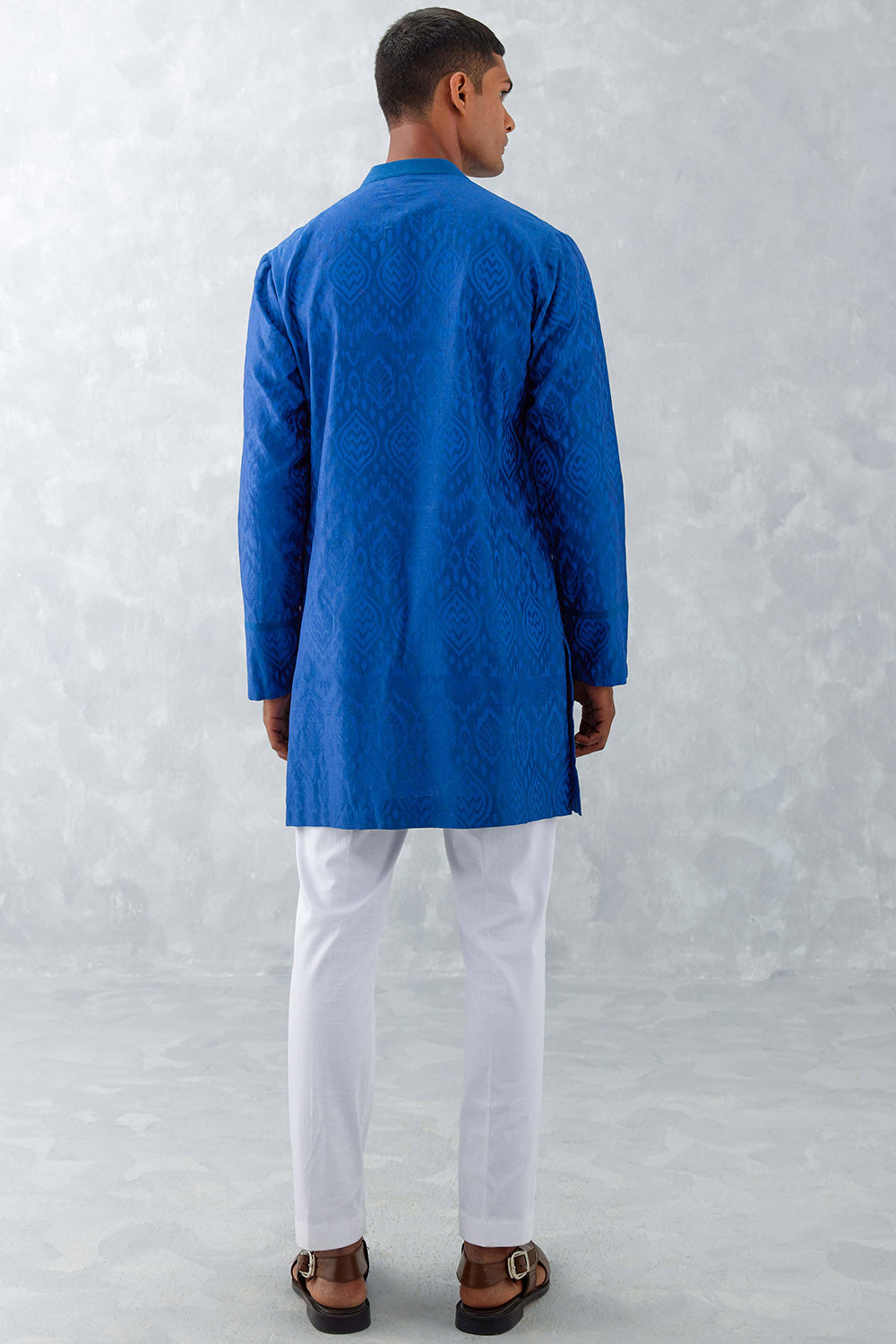 Blue Ikat Print Chanderi Kurta Set