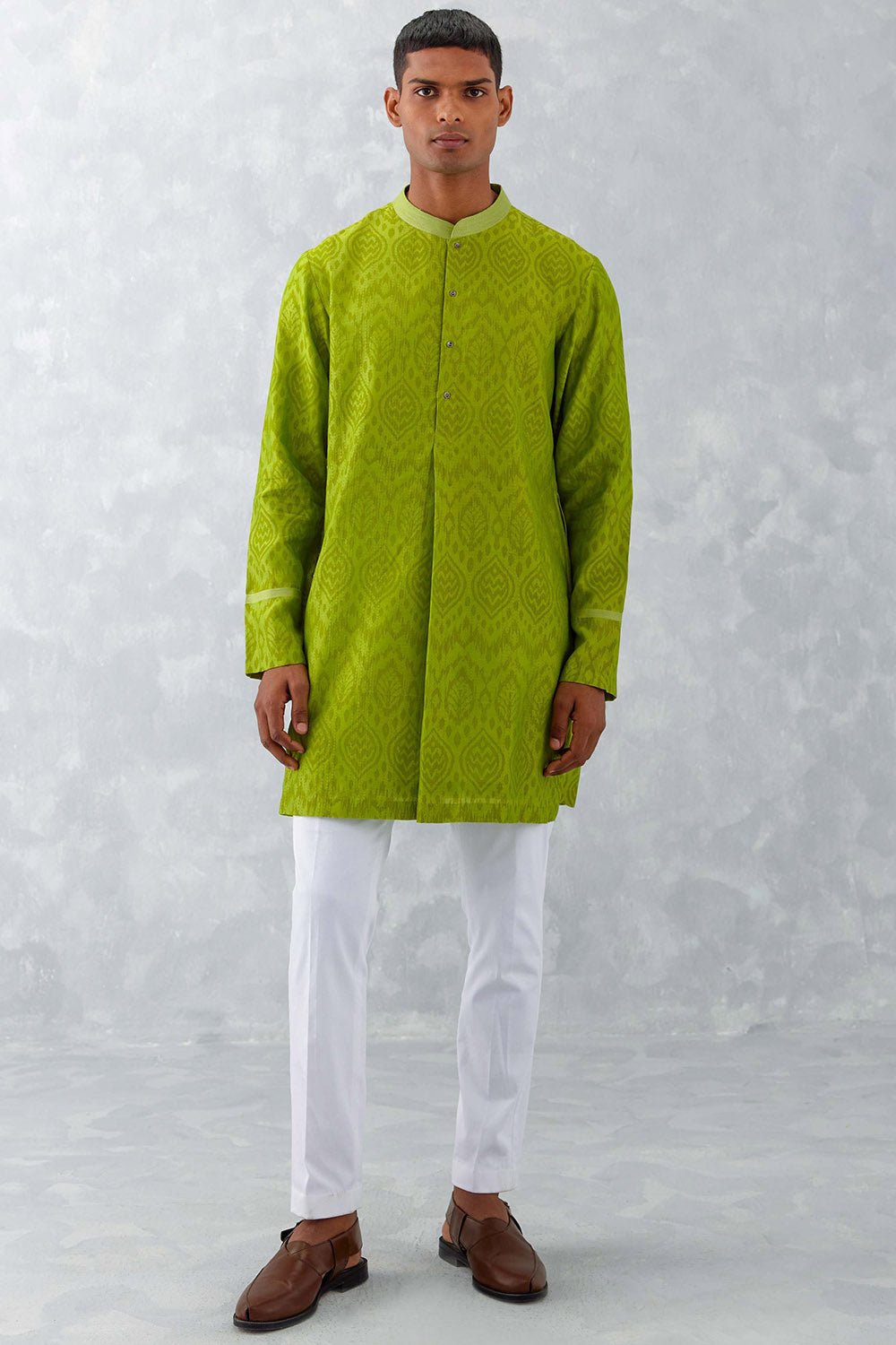 Green Ikat Print Chanderi Kurta Set