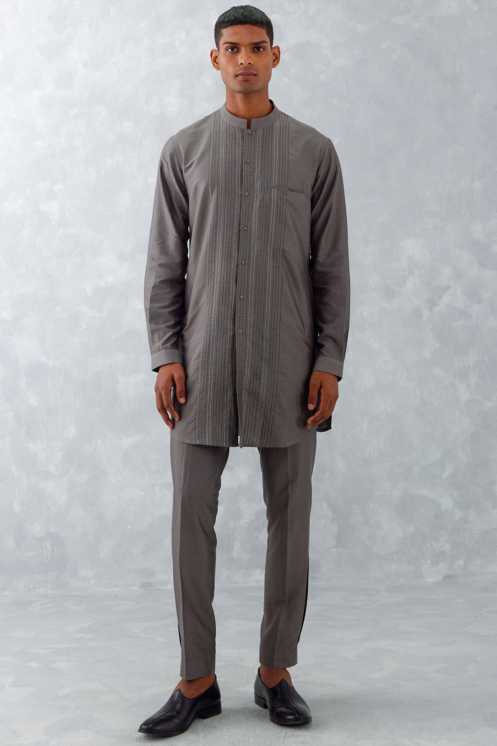 Grey Pin Tucks Short Kurta Set