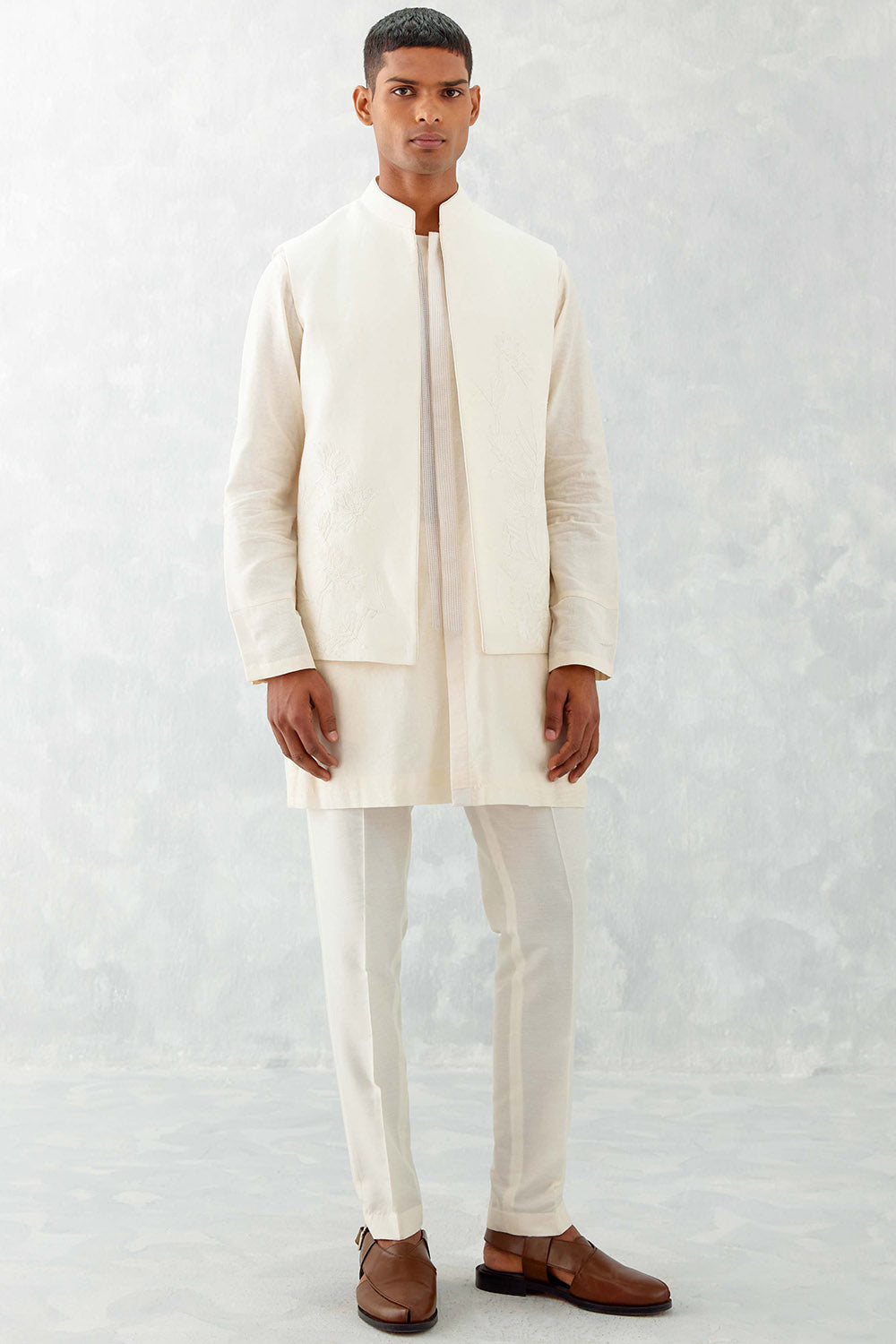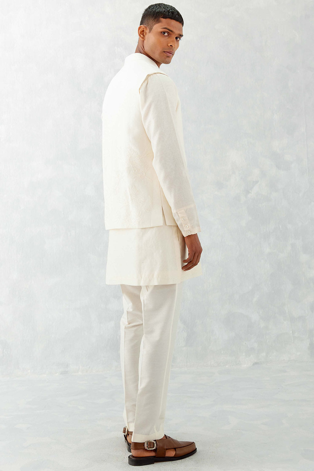 Ivory Kurta With Embroidered Bundi Set