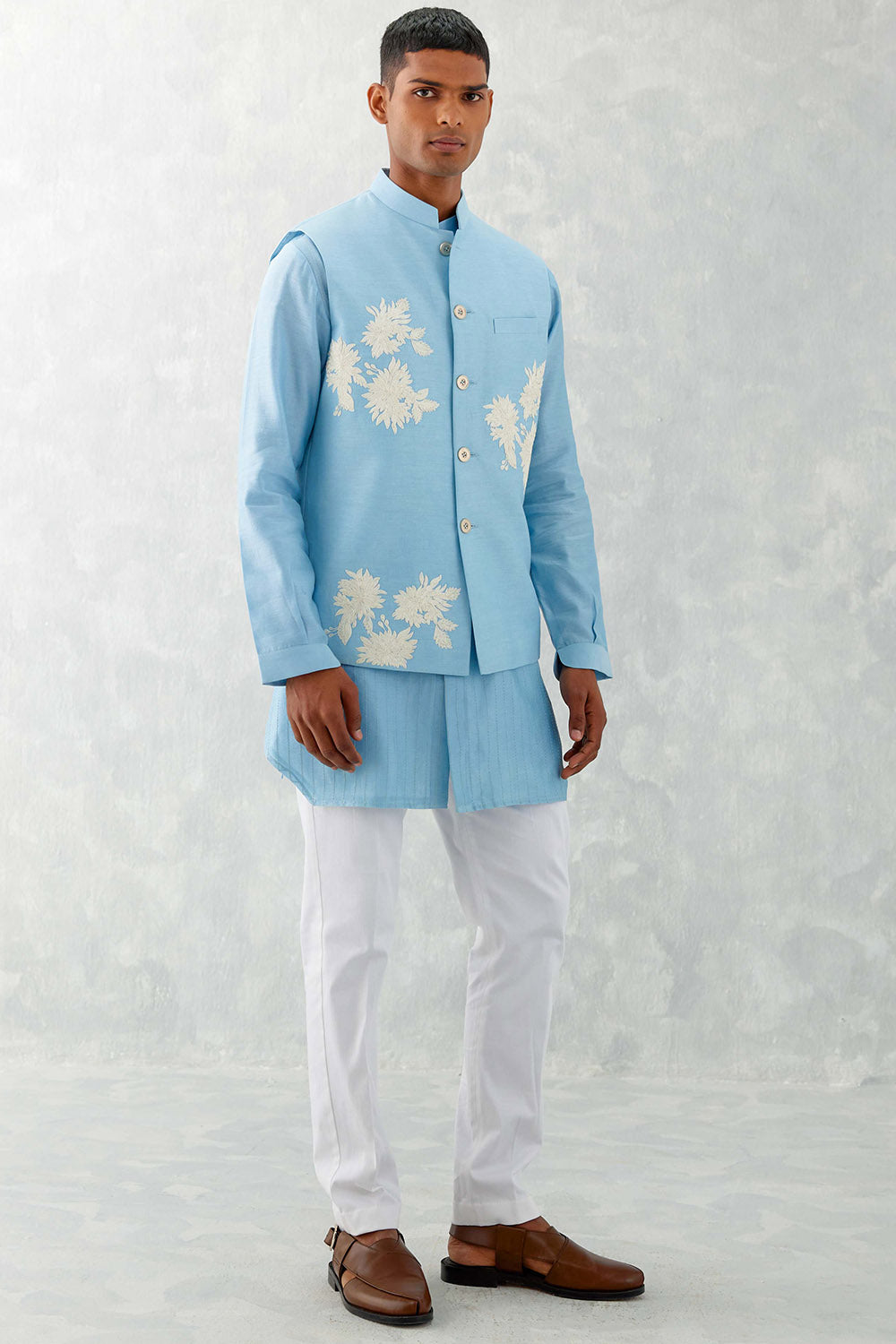 Sky Blue Kurta With Embroidered Bundi Set
