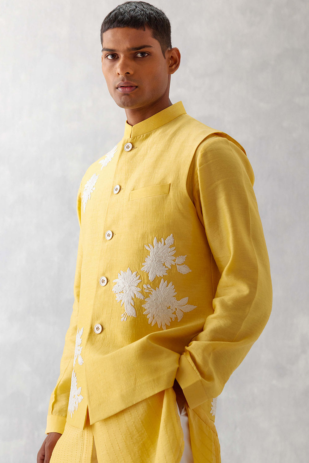 Mango Yellow Kurta with Embroidered Bundi Set