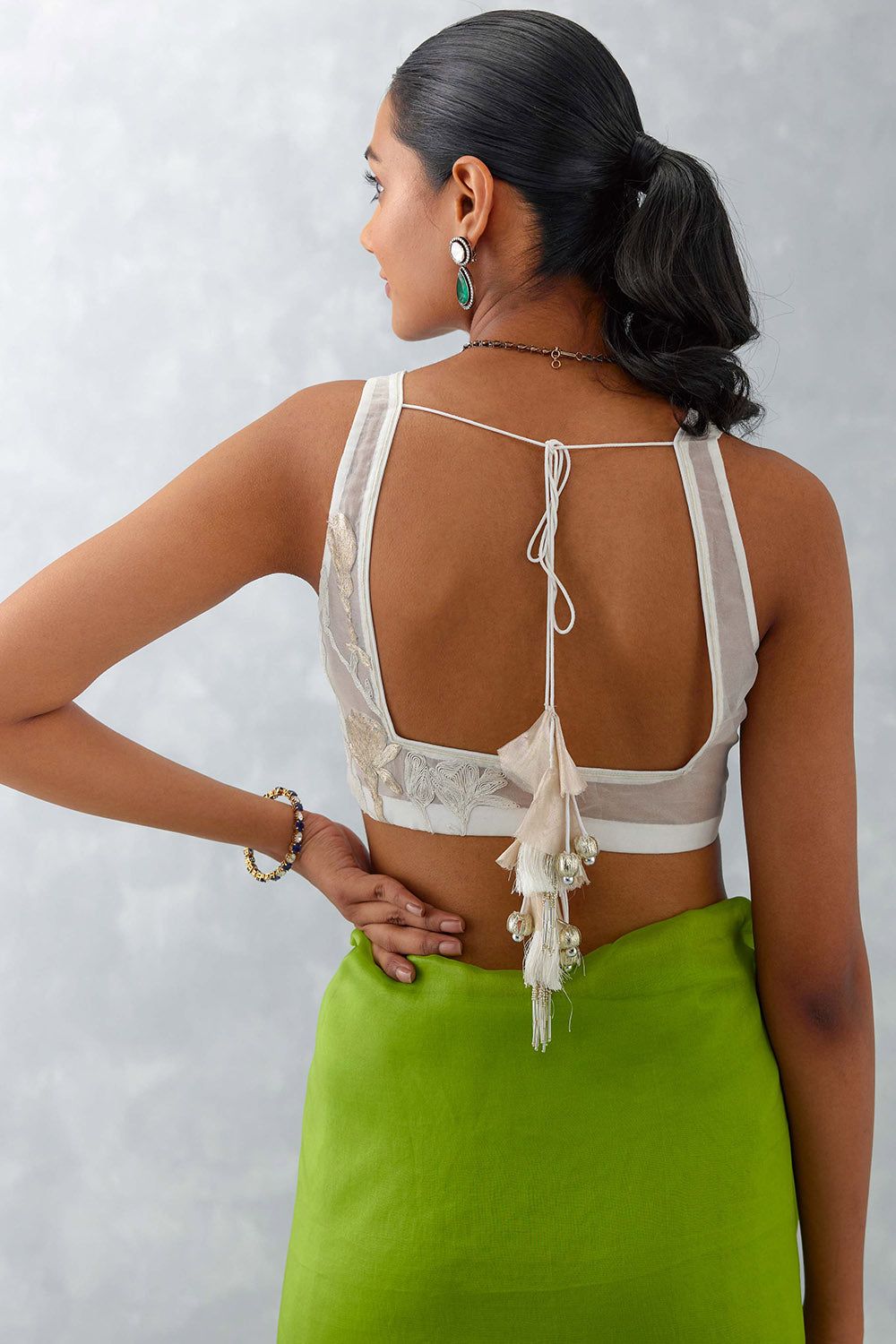 Green Embroidered Silk Organza Saree