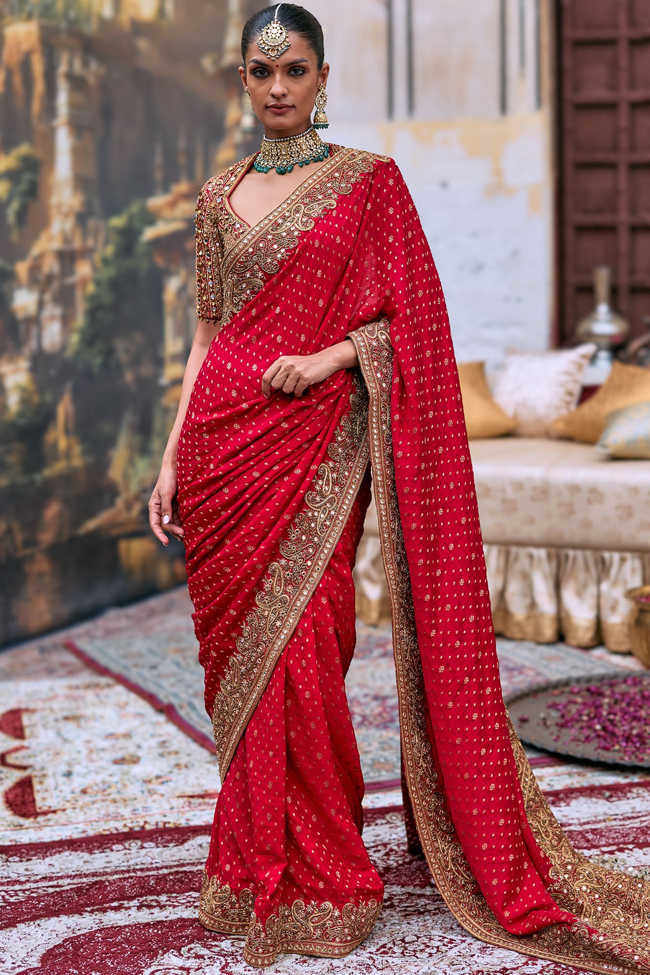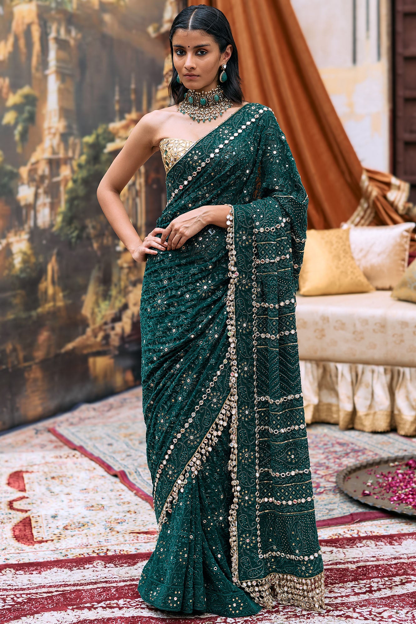 Best known for chikankari, mirror work and gota-weaving, reimagining rich textile heritage into maximalist couture. High-impact for weddings and special occasions