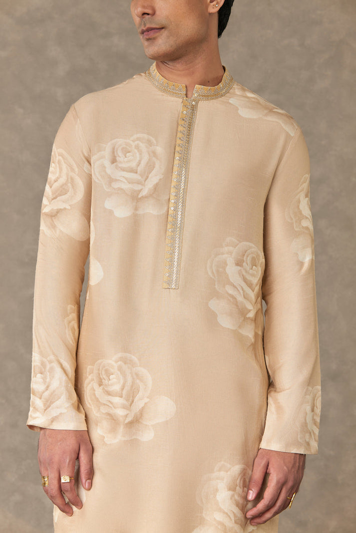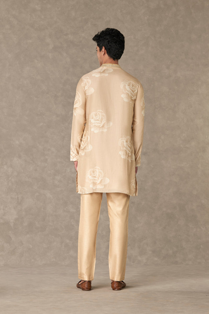 Digital printed floral kurta set with dori, sitara, dabka & moti embroidery paired with a straight pant.