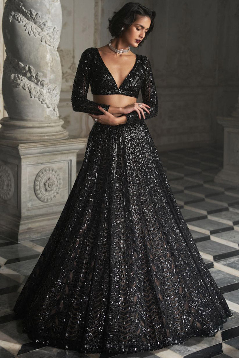 Black Sequin Lehenga Set