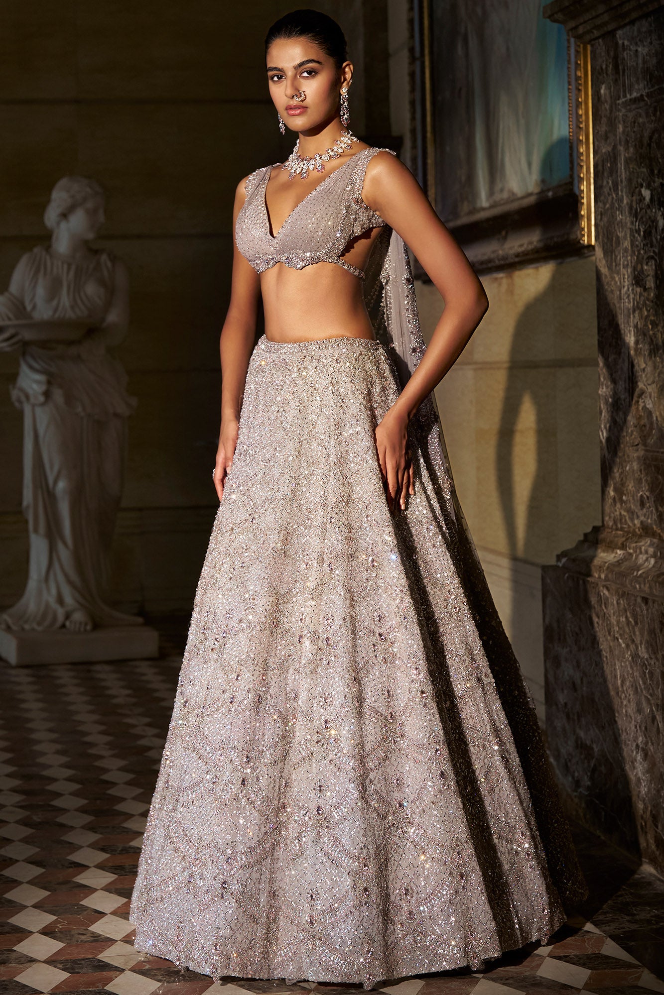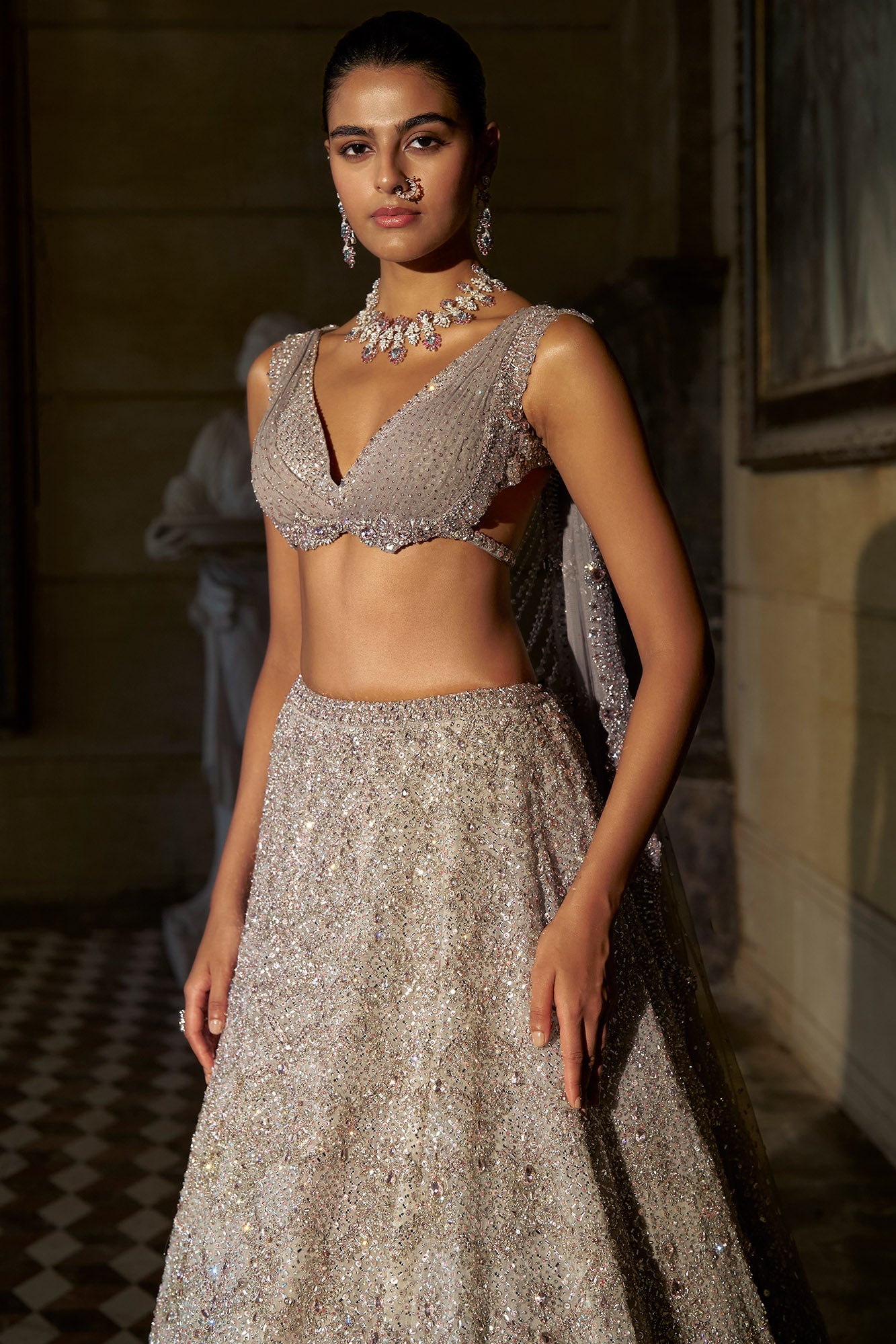 Seema Gujral Metallic Silver 3D Lehenga Set
