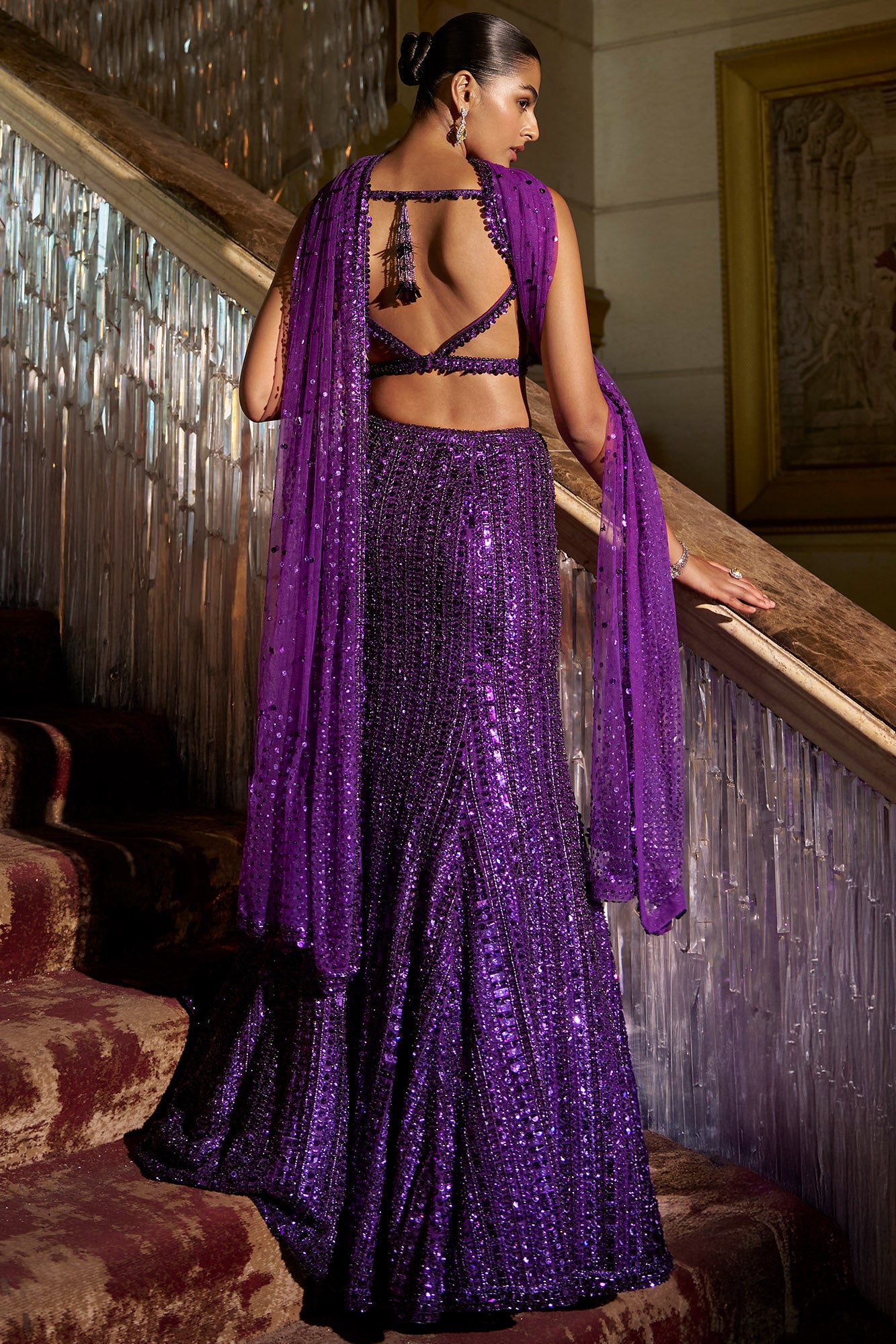 Seema Gujral Dusty Mauve Sequin Lehenga Set
