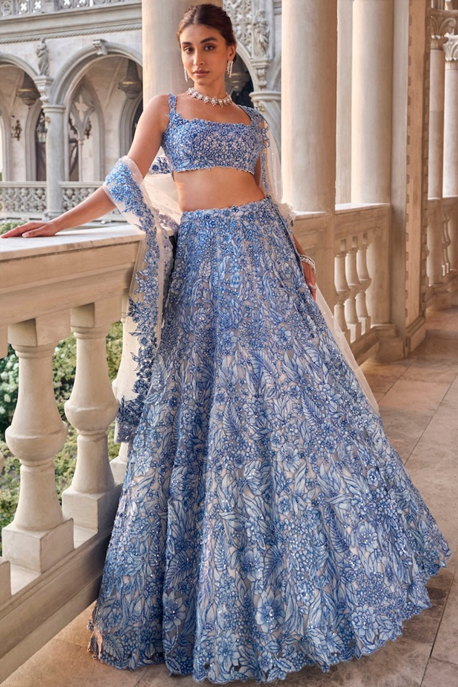 Powder Blue Three-Dimensional Lehenga Set