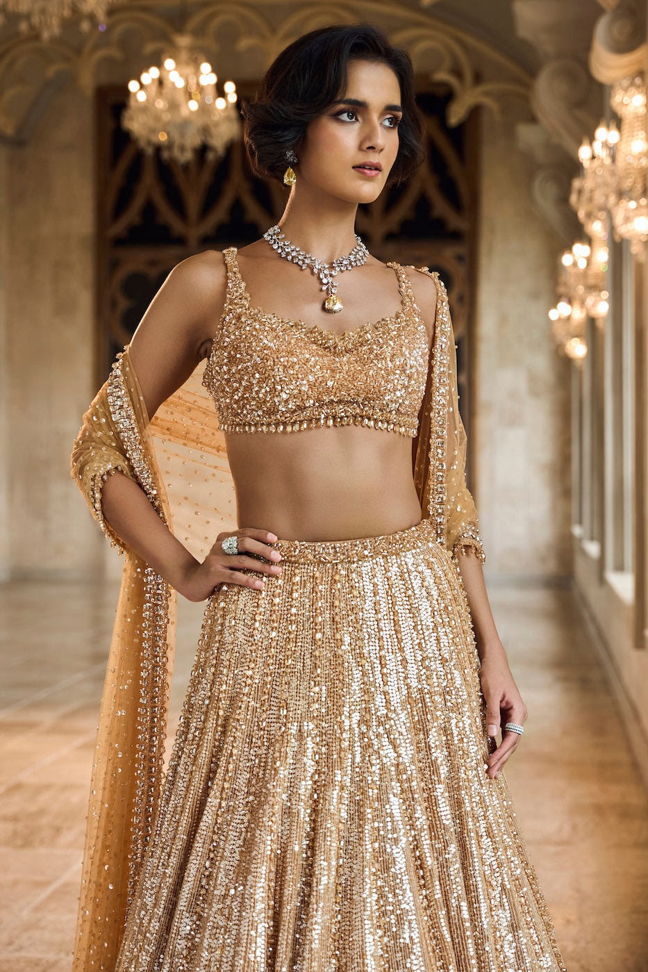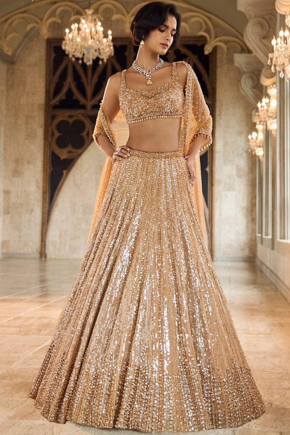 Gold Sequin Lehenga Set