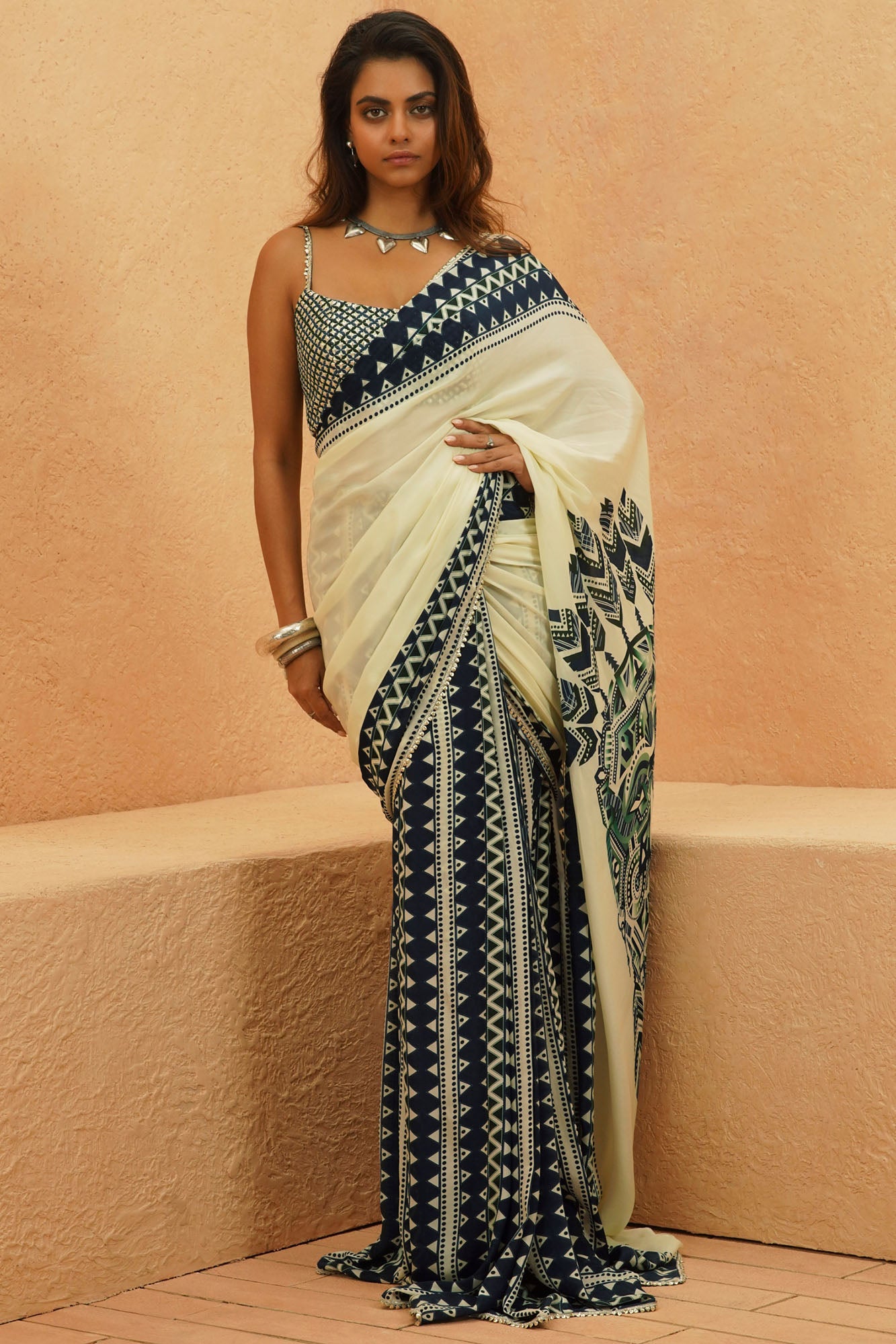 Sami Saree with Fringe Bib