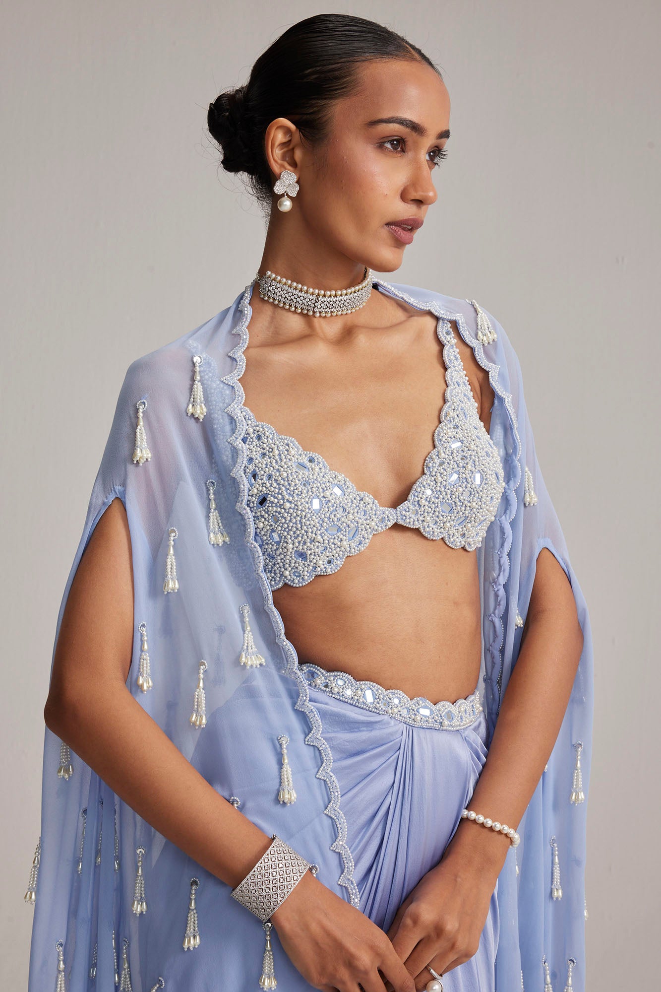 Dew Blue Cape And Draped Skirt Set