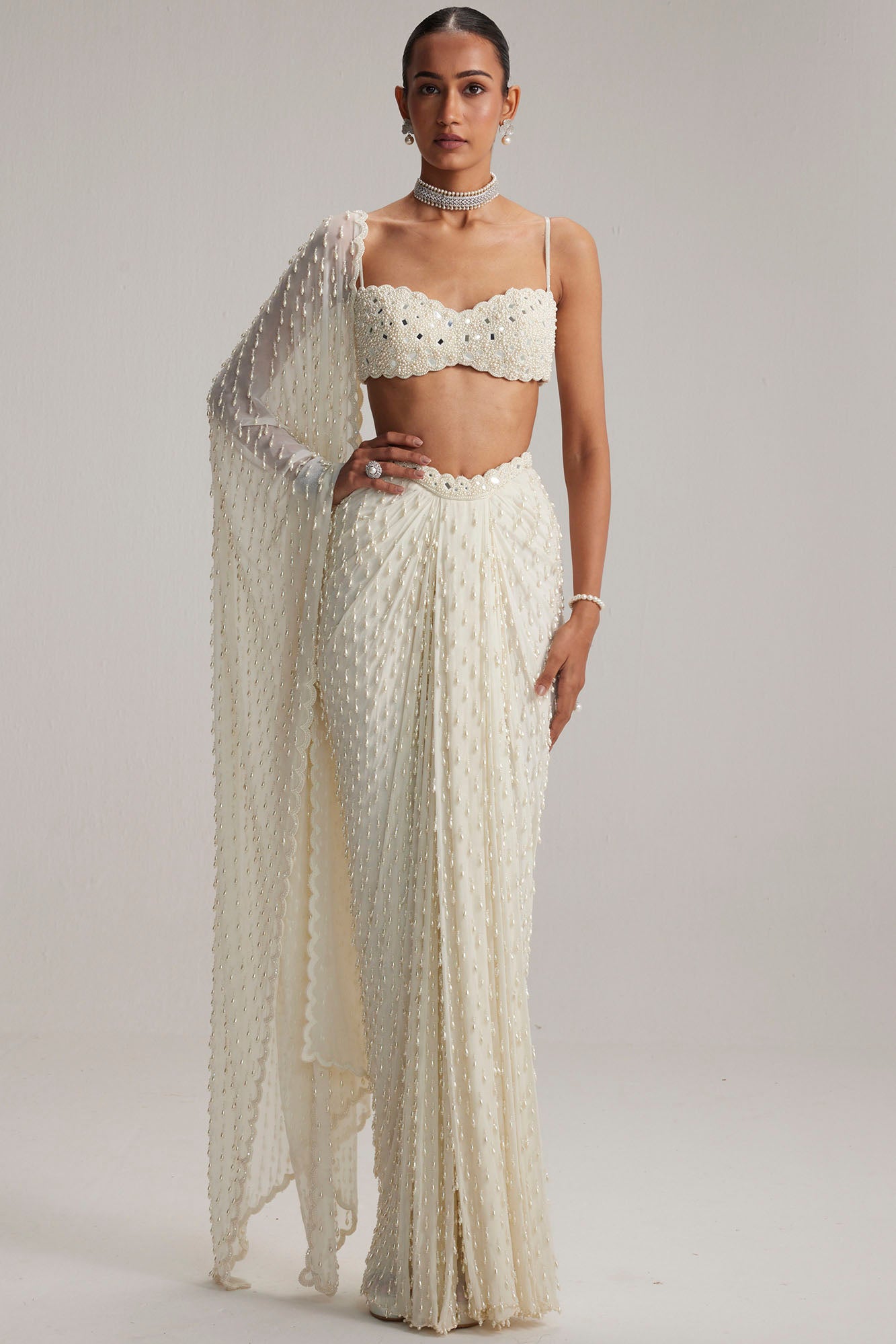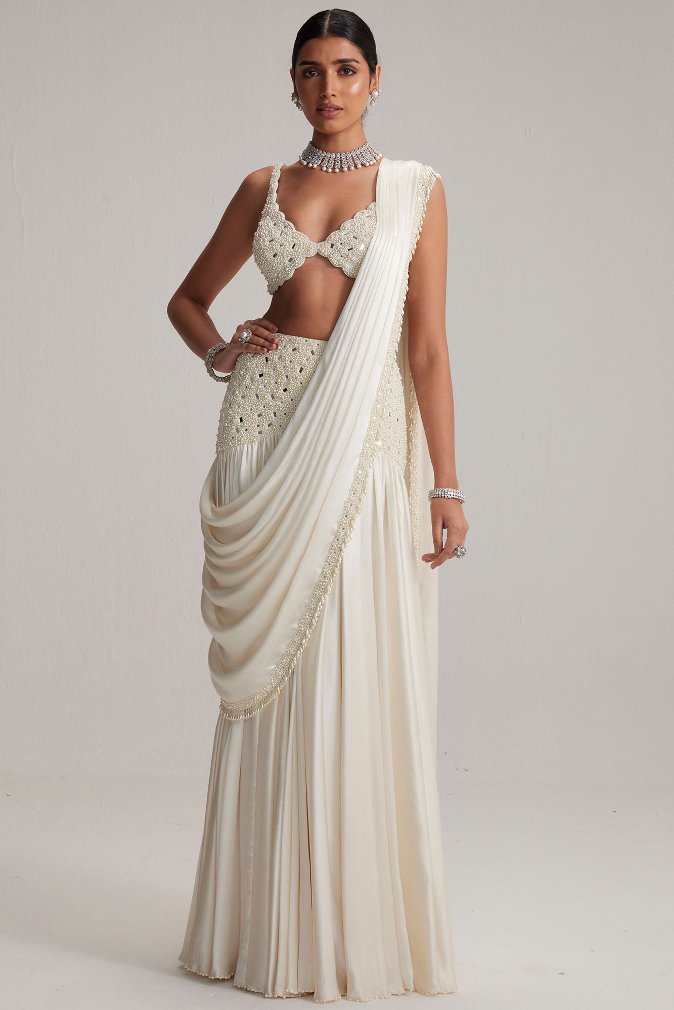 Pearl White Draped Skirt Set