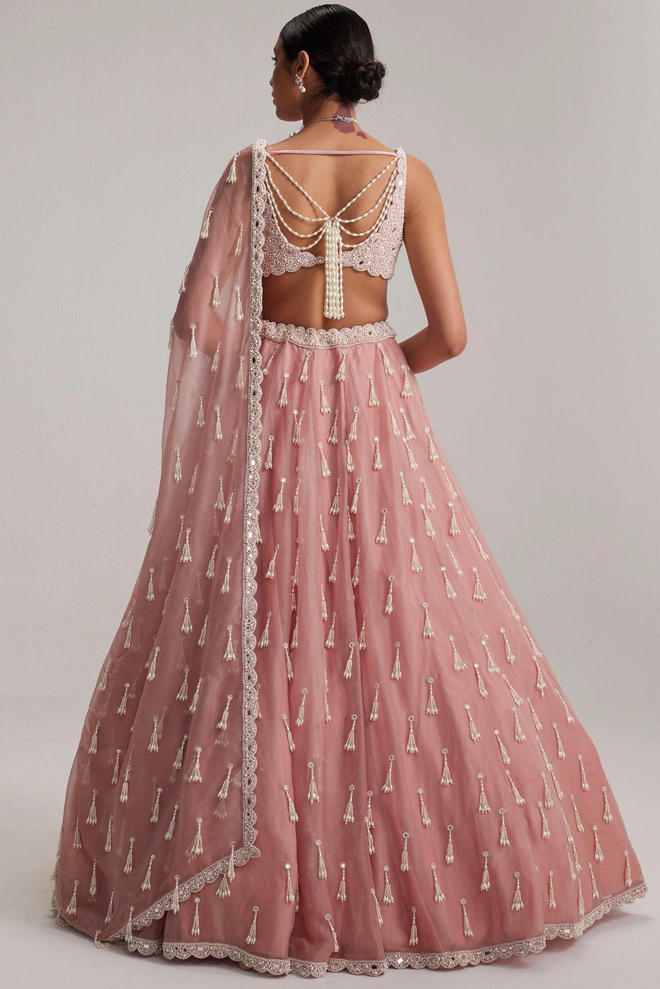 Dusty Rose Mirror & Pearl Lehenga Set