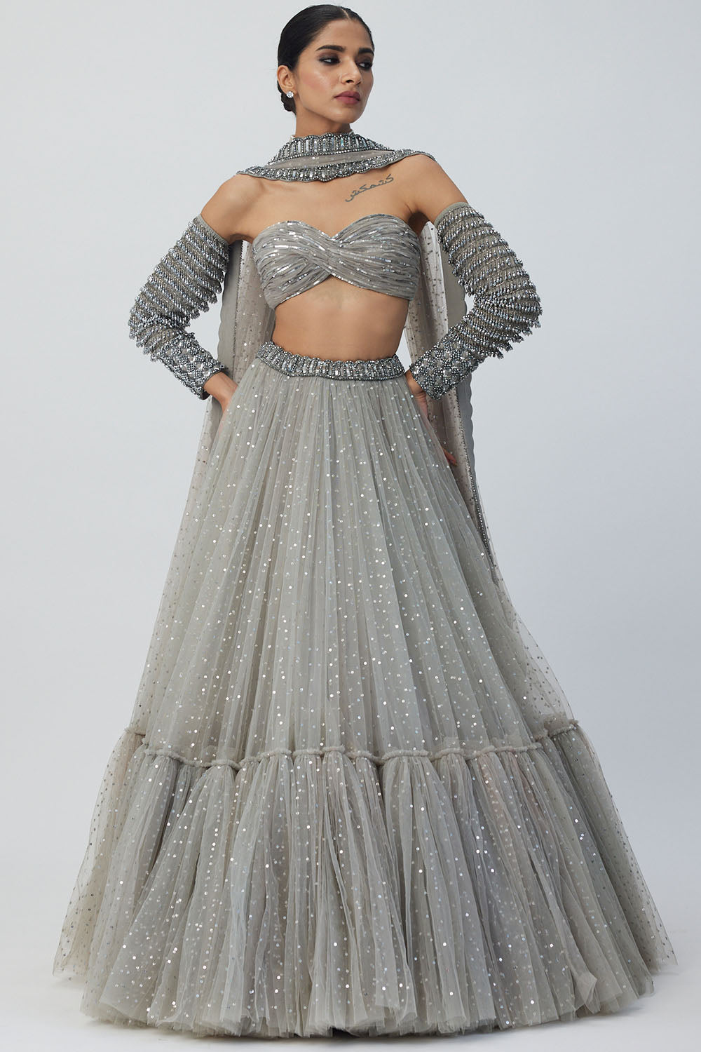 Crystal Grey Tulle Lehenga Set