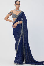 Deep Blue Embroidered Saree