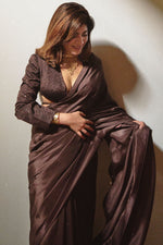 An easy-to-drape, transeasonal saree in Nespresso Brown that can seamlessly flow from your everyday outfit to evening celebrations. Play up the lightweight silk with a statement blouse or a tonal cape for a striking ensemble that commands attention. The saree comes with an unstitched blouse fabric.